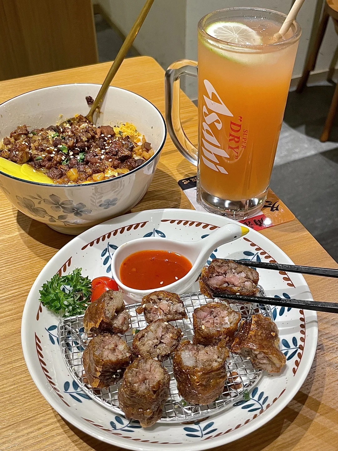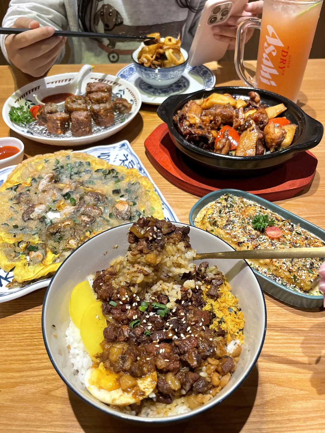吃不上大排队的水牛奶😤 打算放弃的时候和朋友随处逛到这家… 竟然惊喜的好吃!!🤓 店里都是台湾特色的家常菜🍲 卤肉饭的卤肉酱汁和米饭拌匀一起,肉燥肥瘦恰到好处! 还有转角遇到爱的oa煎,电影里的炸猪排,配上店里的台剧bgm,真的很有台剧氛围!!🎬 和朋友约好了下次还要再来!!