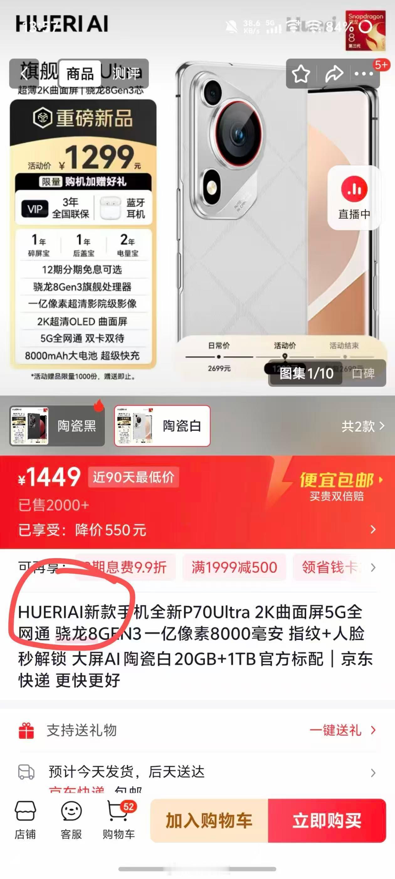 朋友说在某东上看到一个华为p70和某宝上价差特别大结果我点开图片一看根本就不是HUAWEI是HUERIAI