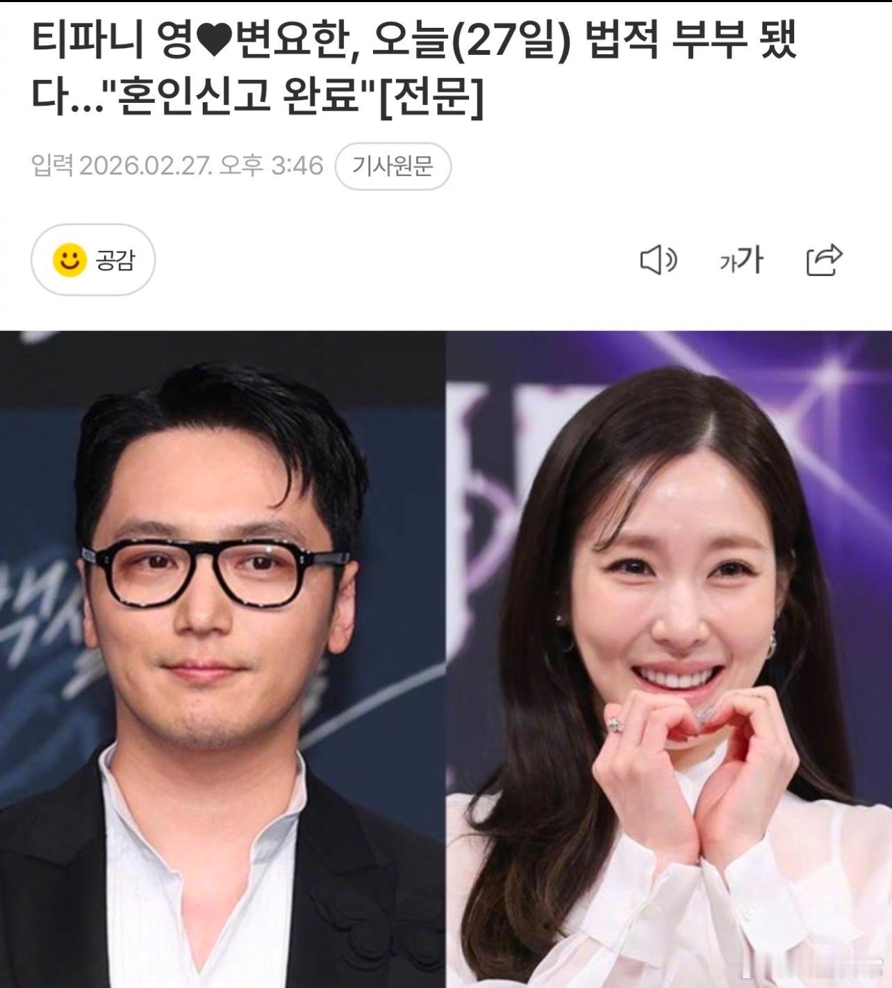 Tiffany和卞耀汉今日登记结婚,婚礼日期和地点尚未确定 Tiffany卞耀汉