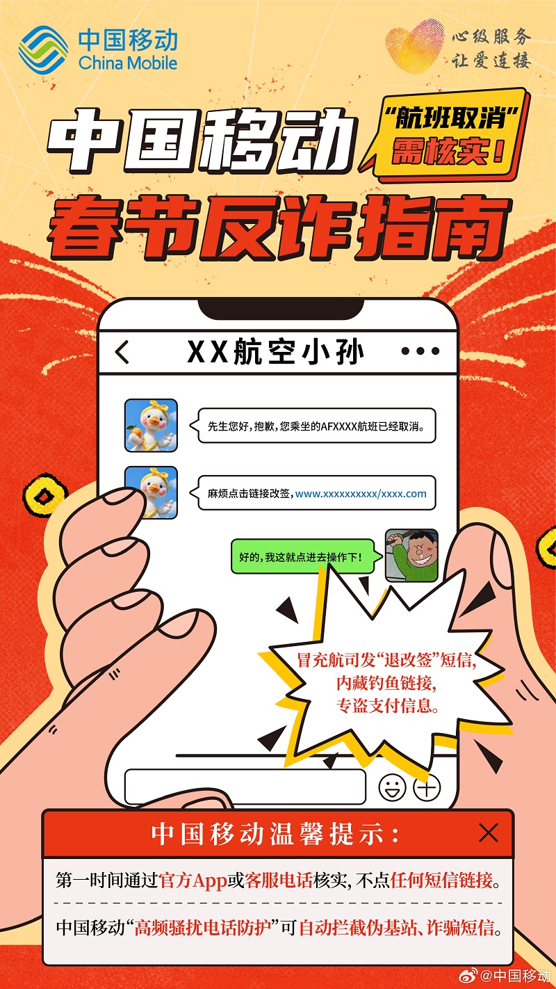 【春节反诈指南 】中国移动提醒您:守住钱袋子,过个安心年! 戳图查看完整指南,转发提醒家人!#通信安全一起get##移起过新春#