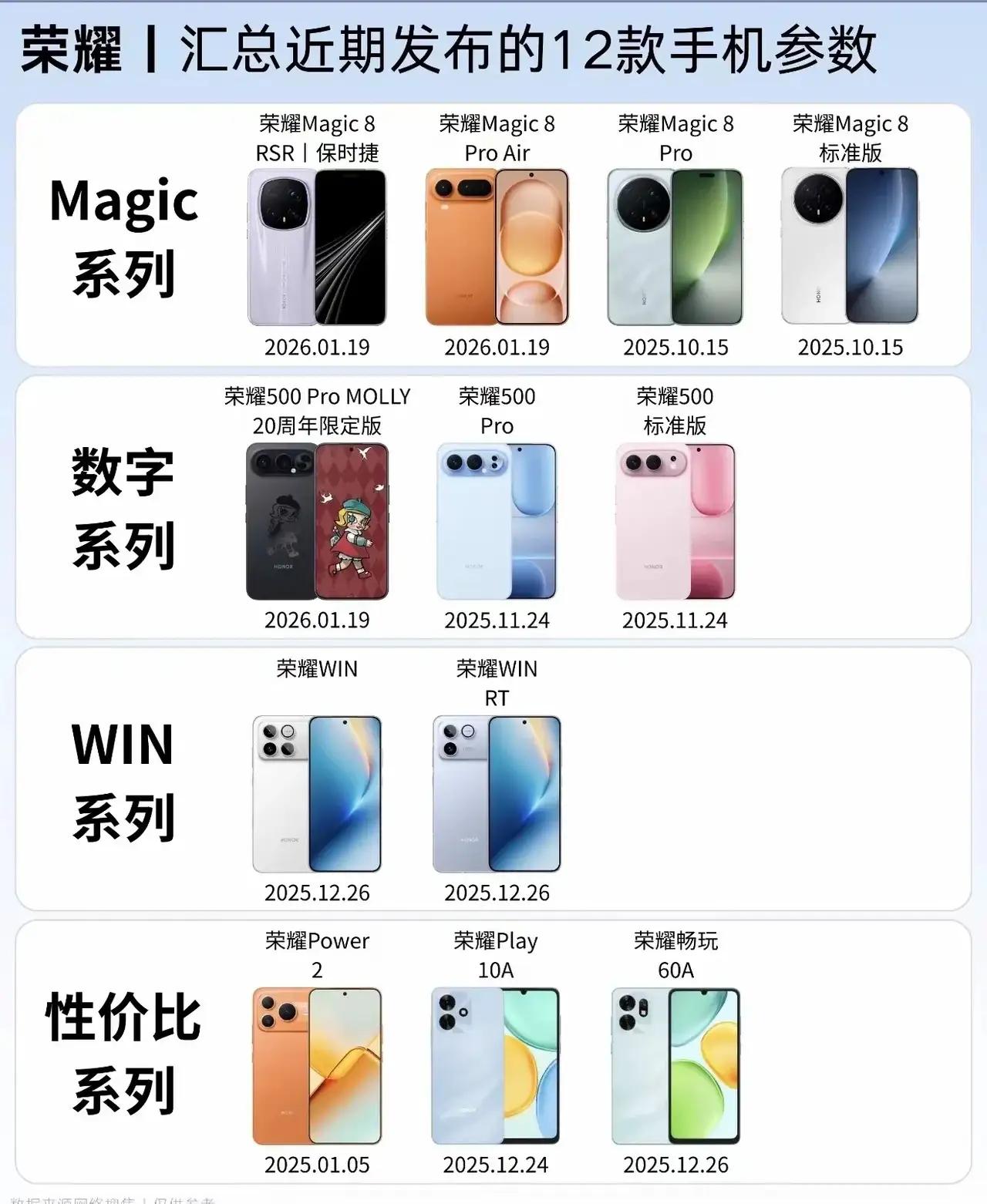 盘点完荣耀这半年的新机,真的越看越明白! Magic8系列冲高端,配置拉满,商务旗舰一步到位;WIN系列专攻游戏,散热和流畅度都很稳;500系列主打颜值人像,自拍拍照更好看;Play系列守住千元档,学生党、备用机都合适。 从1000多到8000多,每个价位都有得选,不管你是办公、玩游戏、爱拍照,还是预算有限,都能找到适合的。 这么多机型里,你觉得哪台是口碑黑马?