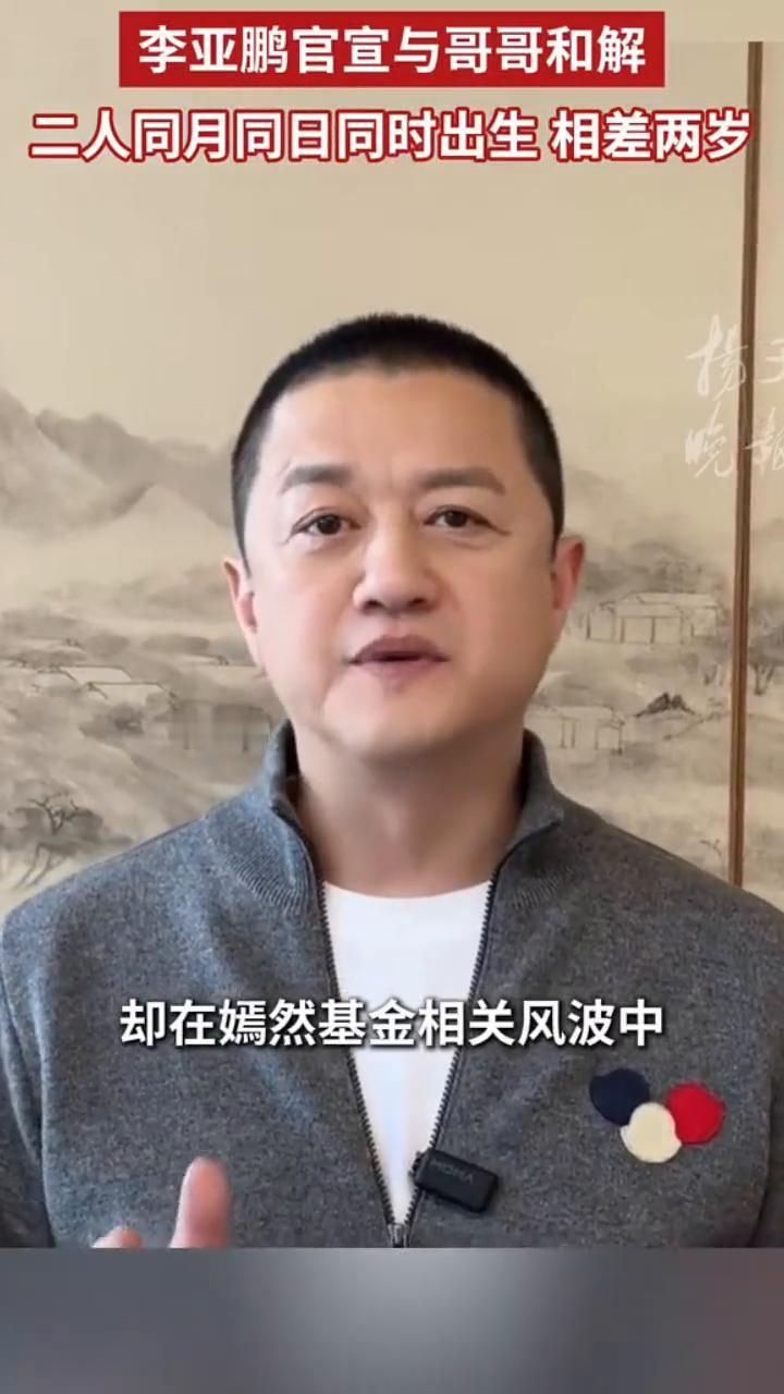 李亚鹏官宣与哥哥和解,二人同月同日同时出生相差两岁。 扬子晚报。 2月26日,李亚鹏在社交平台官宣与哥哥李亚炜和解,晒出哥哥1月23日发来的微信长文截图及1989年兄弟合影,披露二人同月同日同时出生相差两岁的缘分。 哥哥在文中坦言,曾因不理解李亚鹏的坚持心生埋怨,却在嫣然基金相关风波中被其坚守慈善16年的初心打动,不仅主动捐款万余元,还带动11岁的儿子成为嫣然志愿者,彻底化解多年心结。