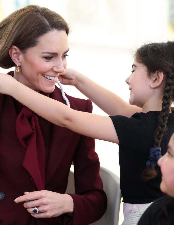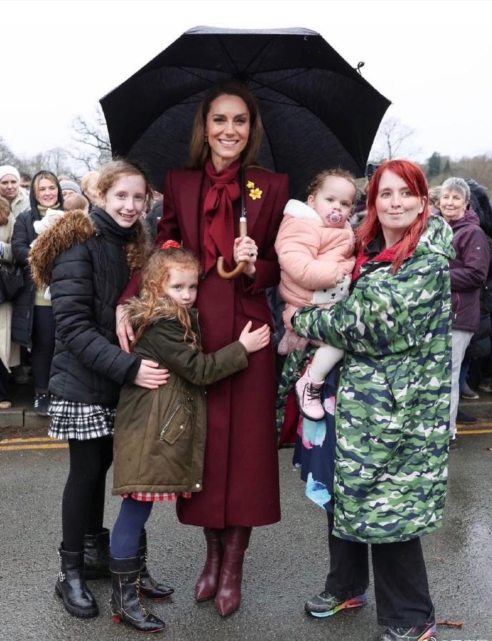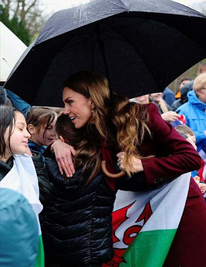 看到威廉王储和凯特王妃和孩子们互动的这组照片,实在忍不住分享一下,太有爱了! 这组照片是2月26日,威尔士亲王夫妇访问威尔士时被镜头捕捉下的一组画面。 凯特穿着酒红色大衣,光彩照人。 威廉一身咖色便西,绅士儒雅。 最喜欢的还是这组照片中,威廉和凯特夫妻俩与孩子们互动的画面。 凯特王妃亲密的搂着孩子们合影,收到7岁女童送的礼物时笑得灿烂。 两口子都是大高个,为了配合娇小的幼儿拍合影,王储和王储妃蹲在地上,搂着孩子们亲密又有爱。 果然,两人能受到这么多人的喜欢,不是没有理由的!