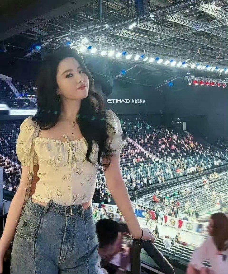 刘亦菲这条裤子挺养生,毕竟降温了肚脐眼必须护住啊