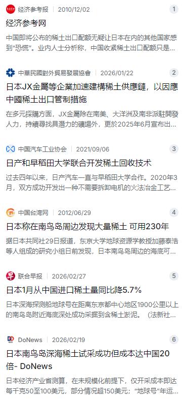 日本人为什么不怕中国制裁?甚至连稀土制裁都不怕?说白了,因为日本早就做好了两手准备! 麻烦看官老爷们右上角点击一下“关注”,方便您进行讨论和分享,感谢您的支持!   日本人在琢磨啥呢?说实话,他们心里也急,但表面上看着稳,是因为这十几年来,他们确实没闲着,偷偷搞了两手准备。一手叫“广撒网”,满世界找矿;另一手叫“变废为宝”,琢磨着怎么从垃圾堆里把宝贝再捡回来。但这两手准备到底管不管用,咱们得把这事儿从头到尾捋一遍。   事情得从2010年说起,那时候因为众所周知的原因,咱们调整了一下稀土的出口配额。这一下,可把日本给打疼了。你想啊,当时日本从中国进口的稀土占了他们总需求的九成左右,国内那些高科技工厂,从造混合动力汽车的马达到生产精密制导武器的企业,全指望着这个。那一年,中国前9个月对日出口其实还涨了167%,但架不住他们胃口大,日媒自己算账,说第二年国内缺口就得有个七八千吨。这一下,日本从上到下都慌了神,政府赶紧掏腰包,催着企业满世界去找矿。   日本企业的执行力确实可以。你像三菱商事、住友商事这些巨头,以前在中国市场抢份额抢得头破血流,那会儿居然手拉手跑到美国加州的芒廷帕斯矿山去谈收购。丰田通商更绝,直接跑到印度去建精炼厂。最典型的还是跟澳大利亚的合作,日本政府出钱出力,帮着企业与澳大利亚的莱纳斯公司签下长期大单,还入股了矿山。当时日本人觉得这招挺高明,等于把鸡蛋从中国的篮子里,分了一部分放到澳洲的篮子里。   可等矿挖出来之后,他们傻眼了。稀土这东西,挖出来只是第一步,最难的是提炼。把矿石变成高纯度的金属,这需要极其复杂的萃取分离技术,而这方面的专利和熟练工,绝大部分都掌握在中国手里。澳大利亚的矿挖得再多,拉回日本也没法直接用,因为他们国内缺乏大规模的精炼能力。这就好比你把咖啡豆种出来了,却发现全世界只有一家磨坊能把它磨成能喝的咖啡粉,而这家磨坊还在中国。折腾了一圈,最后那些澳洲的稀土矿,还是得运到中国来加工,这叫什么?这叫“你挖矿我炼金”,命根子还是攥在别人手里。   吃一堑长一智,日本人又开始琢磨第二手准备:回收。既然买原料受制于人,那我能不能从报废的产品里把稀土再捡回来?日产汽车和早稻田大学从几年前就开始联手搞这个,还真让他们鼓捣出一项新技术,不用把电机大卸八块,直接通过火法冶金,能从废旧马达里回收98%的稀土。听起来很牛对吧?但这技术有个死穴——没米下锅。日本国内一年才报废几辆车?回收上来的废料,还不够一个厂子吃半年的。要真想靠回收养活自己,他们得先把全亚洲的旧家电都收回来,但这物流和人工成本,算下来比直接从中国买矿还贵。   既然地上折腾不明白,日本人把目光投向了海底。2012年,东京大学一个教授带来个惊天好消息:在日本最东边的南鸟岛专属经济区海底,发现了巨量稀土矿,储量够日本用上230年。这消息当时把日本人高兴坏了,觉得终于能翻身农奴把歌唱了。可这矿藏在5600米深的海底,开采难度比登天还大。   一直磨蹭到2026年1月,日本终于派出了他们的王牌科考船“地球号”,去搞试采。2月份船回来了,确实带回来些含稀土的泥浆。但紧接着,现实给了他们一记闷棍。专业人士一算账,因为水深太大,这深海开采的成本,是中国陆地矿区开采的5到10倍,有的机构甚至算出来是20倍。这还不算运回本土的运费和后续的提炼成本。而且,他们从海底抽上来的那堆泥巴汤子,想提炼出能用的稀土,目前的工艺还搞不定,又得从头研发。这哪是开矿,这简直是烧钱听响。   日本人当然也知道单打独斗不行,这几年使劲拉着美国和澳大利亚搞了个“小圈子”,签了一堆框架协议,说要联合投资至少10亿美元,保障供应链安全。但问题是,不管是美国还是澳大利亚,都面临着和日本一样的尴尬:有矿的没技术,有技术的没产能。想自己建分离厂吧,搞了好几年还是磕磕绊绊,环保关过不了,成本账算不平。到最后,全球稀土冶炼分离的产能,中国依然占了百分之八九十的绝对大头。   所以你看,从2010年到现在,2026年了,日本又是买矿又是研发又是深海淘金,折腾了十几年,结果怎么样?最新的贸易数据显示,2026年1月,日本从中国进口的稀土量也就降了5.7%。降这么点,还有专家分析说可能是季节波动。这不就说明问题了嘛。他们搞的那两手准备,就像是备了两个救生圈,看着挺全乎,可等真掉水里才发现,一个漏气,一个漂得太远够不着。说到底,日本人不是不怕制裁,而是这十几年折腾下来,他们心里比谁都清楚,想完全绕开中国搞出一条完整的稀土产业链,这事儿,难度不比重新造个轮子小。