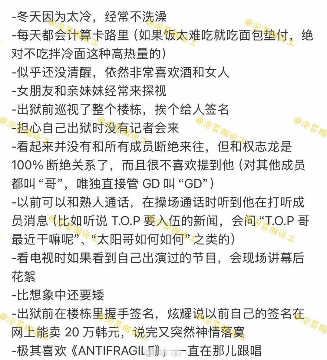 李胜利的狱友repo狱友爆料他每天算卡路里、跟唱女团歌、挨个牢房签名,甚至炫耀“