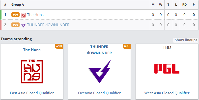 PGL布加勒斯特站亚洲区封闭预选赛的唯一出线名额,将从蒙古战队TheHuns、澳洲战队THUNDERdOWNUNDER和西亚区预选赛的优胜者在之间产生。