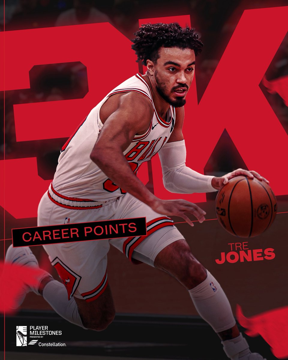 “3000分!恭喜特雷-琼斯突破生涯3000分大关!”公牛官方附文道。