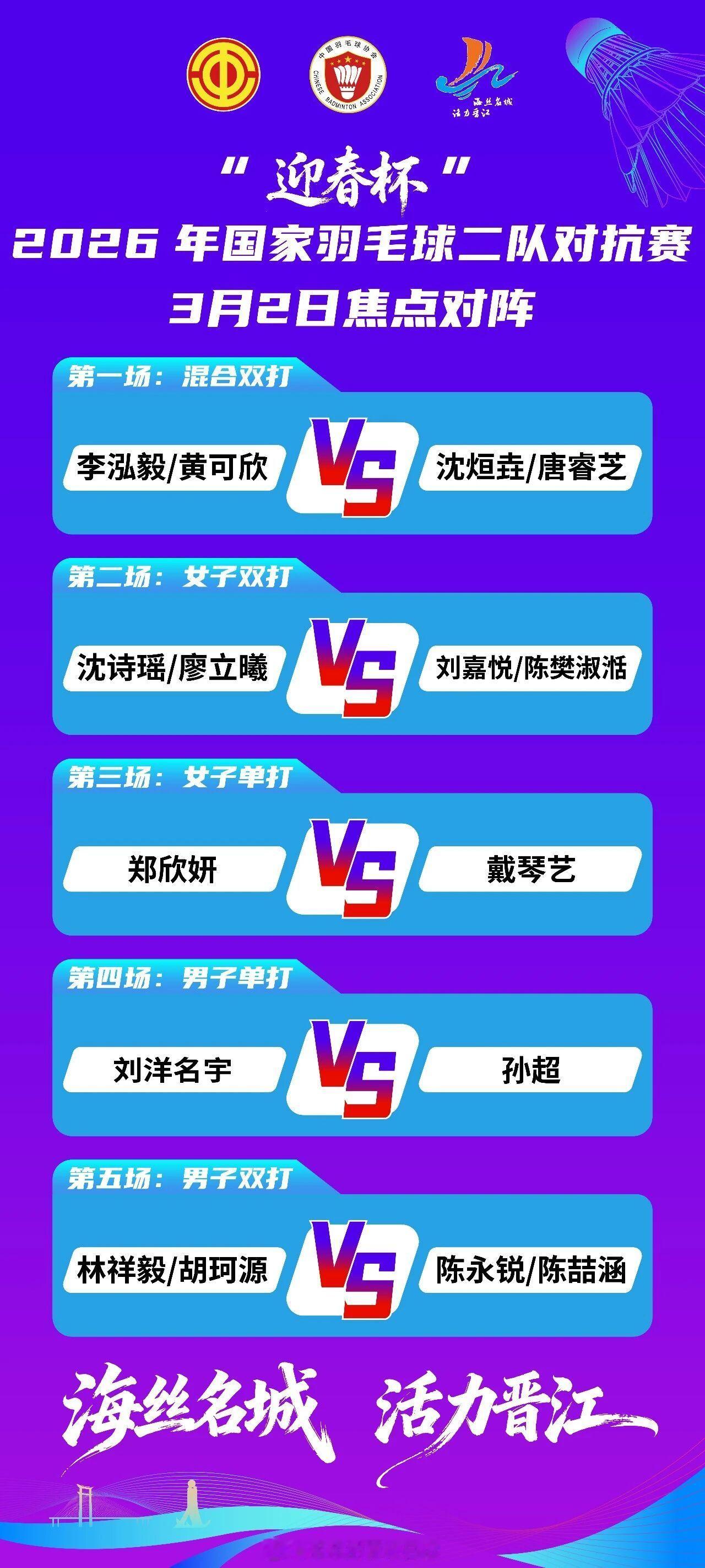 国家羽毛球队迎春杯对抗赛即将燃战晋江