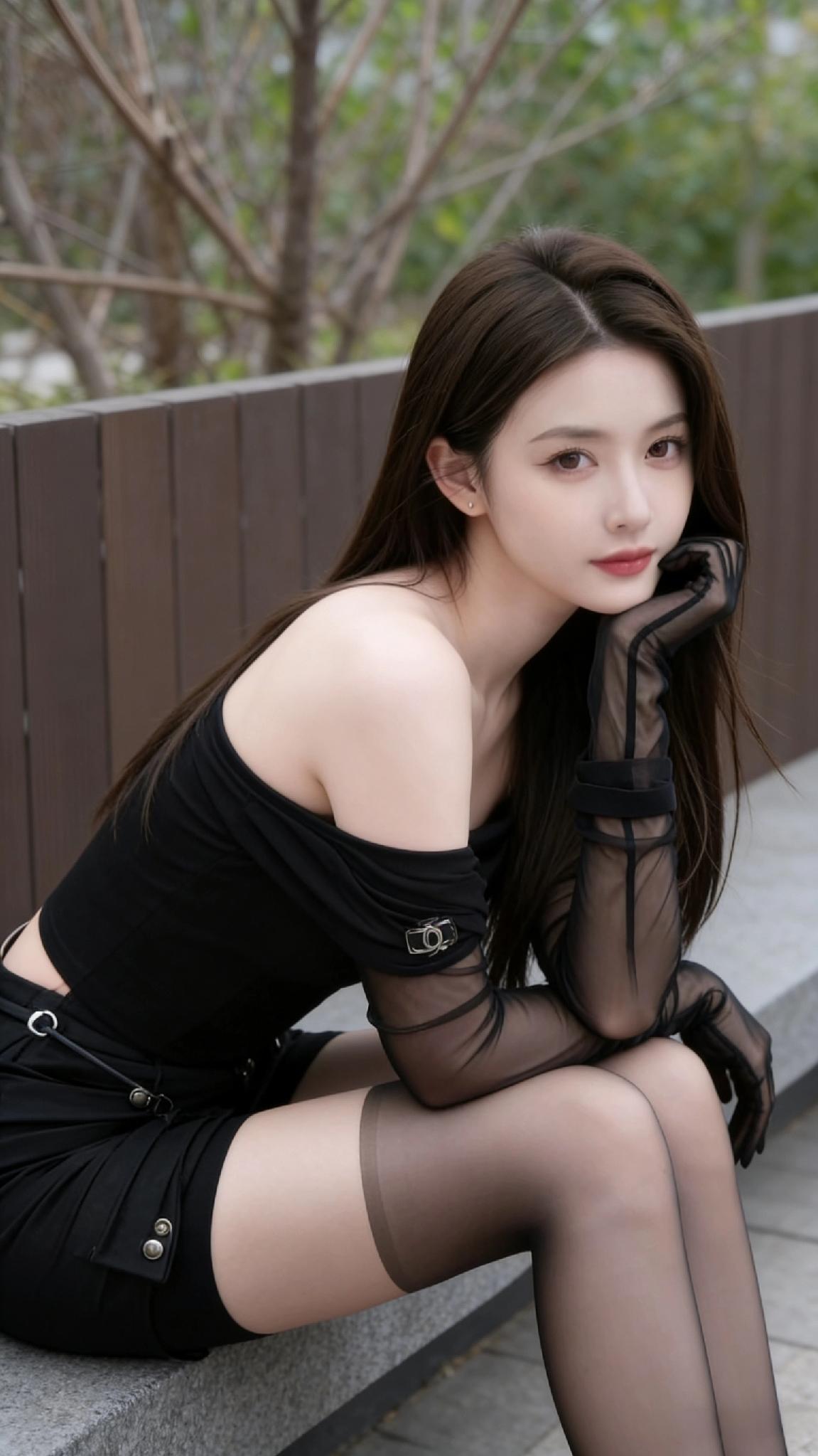 黑纱美人倚栏坐,情意绵绵思悠长高雅气质美女