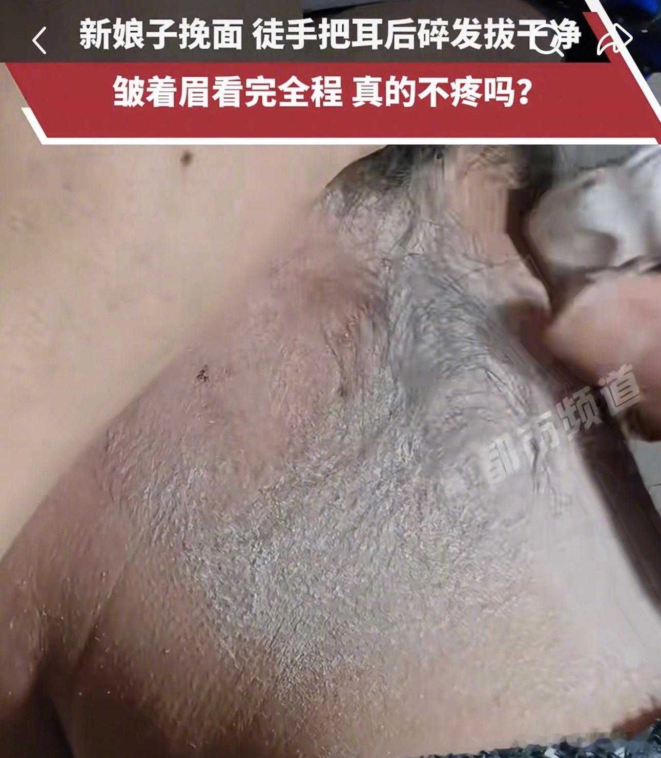 新娘出嫁徒手拔光碎发我的妈呀这这这 刮毛刀不熊吗