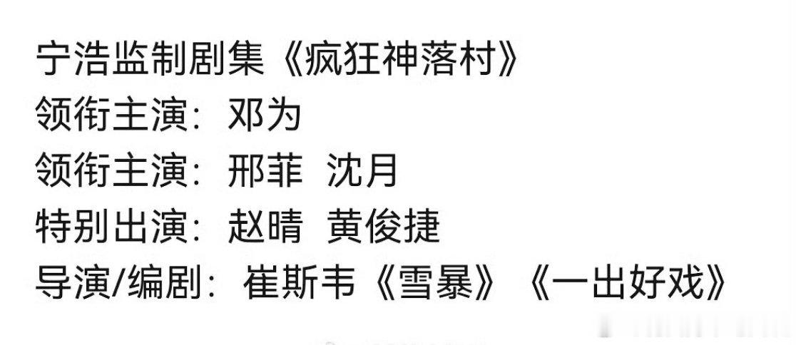🍉🍉宁浩监制网剧《疯狂神落村》邓为➕邢菲导演兼编剧崔斯韦之前是宁浩、黄渤电影的编剧,这个🍪怎么样