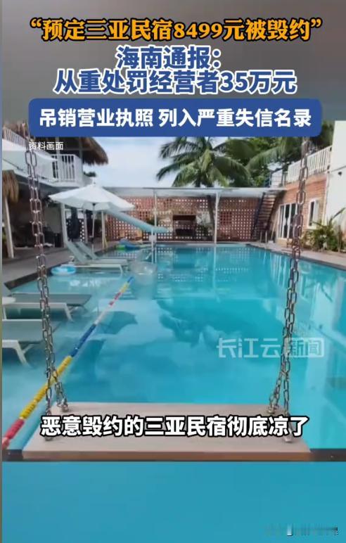 海南三亚,一男子提前2个月订了三亚一民宿的房间,准备春节期间在那住大半个月,可谁知在临出发前的一天,民宿老板突然单方面毁约。男子一查才发现,民宿的价格都已经涨了三四倍,他猜测老板肯定是想涨价所以才毁约的,一怒之下他将民宿老板的恶行给投诉了,这下民宿老板悲剧了。 对于来自北京的李先生来说,过年期间去三亚已经成为了一种习惯,那里不仅有舒适的环境,还能让一家人好好休个假。 去年12月6日,李先生和往年一样,早早地在平台上订了民宿。这次他选择了海棠湾的一处四居室,一共订了19个晚上,房费共计8499元,这个价格可谓是非常地划算。 然而计划赶不上变化,在2026年1月25日,也就是李先生一家人准备出发的前一天,民宿老板突然给说房间都住满了,让李先生一家人另找住的地方。随后李先生就收到了商家取消订单的通知。 李先生当时就火了,怎么能说取消就取消?李先生怀疑民宿老板就是想涨价,果不其然,李先生查看了民宿的房价,已经从8499元涨到了3万多元。 李先生顿时明白了,这民宿老板肯定是看着春节期间其他民宿都暴涨了,眼红了,所以心黑了,觉得之前的便宜合同挡了他的财路。 之后,李先生就把民宿老板给投诉了。 对于李先生的遭遇,不少网友发表了意见: “已经见怪不怪了,春节期间暴涨是肯定的,如果觉得贵可以不去。” “老板明显是违约了,不仅要退还订房费,还应当退还机票钱。” “最恶心的就是那种先斩后奏的,把人骗过去再杀猪。支持李先生硬刚到底,如果不严惩这种行为,以后谁还敢来海南玩?” 三亚当地的旅游协会对此十分重视,他们已经意识到诚信经营的重要性,如果一旦因为民宿老板的行为导致游客不来三亚了,那损失可谓巨大。 因此,在旅游协会的协调下,平台先行赔付了李先生因民宿老板的违约行为而产生的损失。 之后,市场监管部门直接给民宿老板下达了处罚决定,拟对民宿老板罚款35万元,并吊销营业执照,同时将民宿老板列入严重失信名单。 对此,不少网友拍手称好,这次旅游协会和市场监管部门十分地给力。 其实民宿老板的行为,不仅是在毁掉自己的生意,更给整个三亚的旅游行业抹了黑。 作为一名经营者,无论如何都应当坚持诚信经营。可就是有些像民宿老板这样的经营者,以为只要把游客的钱骗到手,一切就万事大吉了。 殊不知在互联网时代,经营者的每一次失信,都会被无限放大,变成钉在耻辱柱上的钉子,会遭到大家的抵制。 真正聪明的经营者是不会把顾客当傻子,因为赚一次钱,和赚一辈子的钱,是个人都能分得清楚。 民宿老板为了多赚几万元而撕毁了与李先生的合约,其实就是摧毁自己的信誉。而在任何时代,信誉是硬通货,一旦失去,万金难赎。 《消费者权益保护法》第55条规定,经营者提供商品或者服务有欺诈行为的,应当按照消费者的要求增加赔偿其受到的损失,增加赔偿的金额为消费者购买商品的价款或者接受服务的费用的三倍;增加赔偿的金额不足五百元的,为五百元。 民宿老板公然违约,欺诈消费者,那李先生作为消费者就有权在要求民宿老板退还订房费用后,再要求对方按照房费的3倍进行赔偿。 最后,大家来说说看,这个民宿老板毁约的行为是不是傻?就算他毁约了也能多赚点钱,那市场监督管理部门的35万元罚款呢?吊销营业执照呢?说真的,有时候真不明白某些经营者的脑回路,也许有些人就不适合做生意。 对于此事,您怎么看?欢迎留言交流。