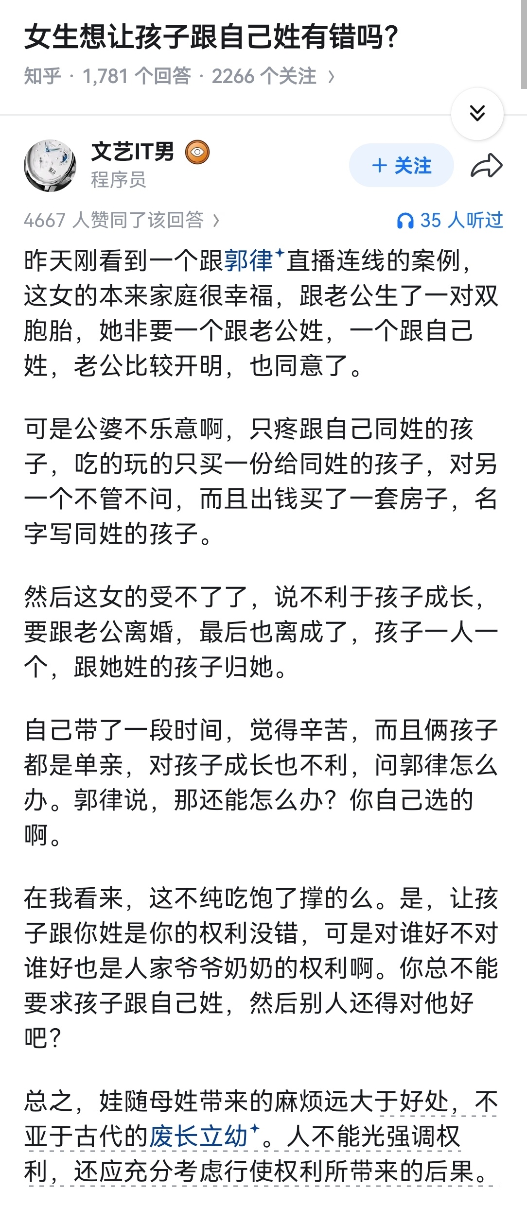 女生想让孩子跟自己姓有错吗?