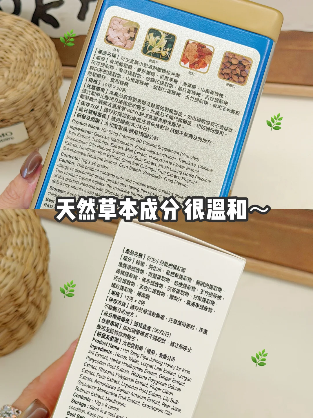 金装清热灵是甜甜的草本味,里面的成分有淡竹叶、桔红、桑叶、金银花、百合等等,三个娃都不抗拒,冲泡起来也方便,温水一冲就化开,没有结块的情况。成分都是天然草本🌿温和给娃喝着我完全不担心,家里一直保持着囤货状态,毕竟刚需消耗太快啦~