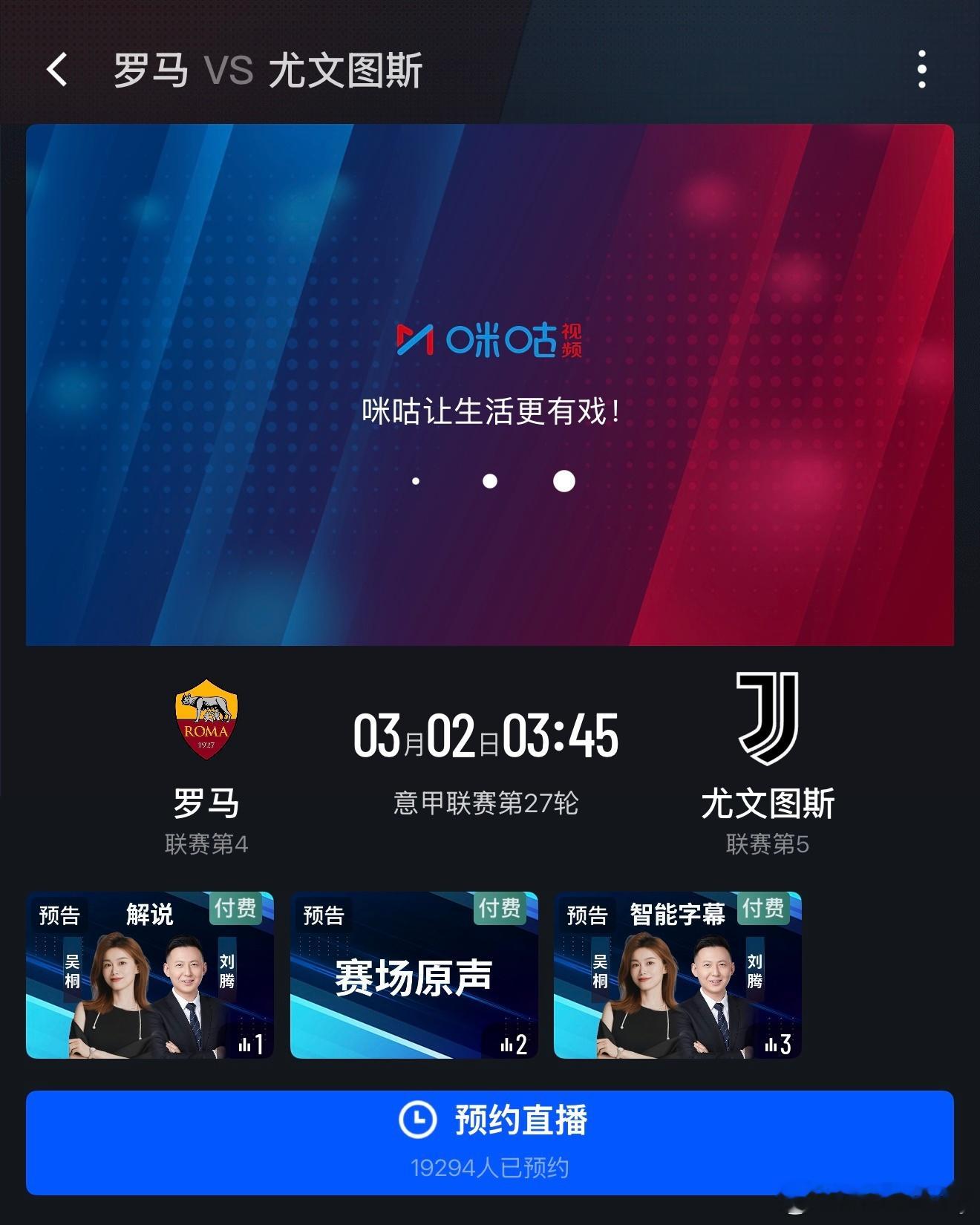 解说预告🎙️周五28:00英超 狼队vs阿斯顿维拉,单口周日27:15意甲 罗马vs尤文图斯,搭档刘腾