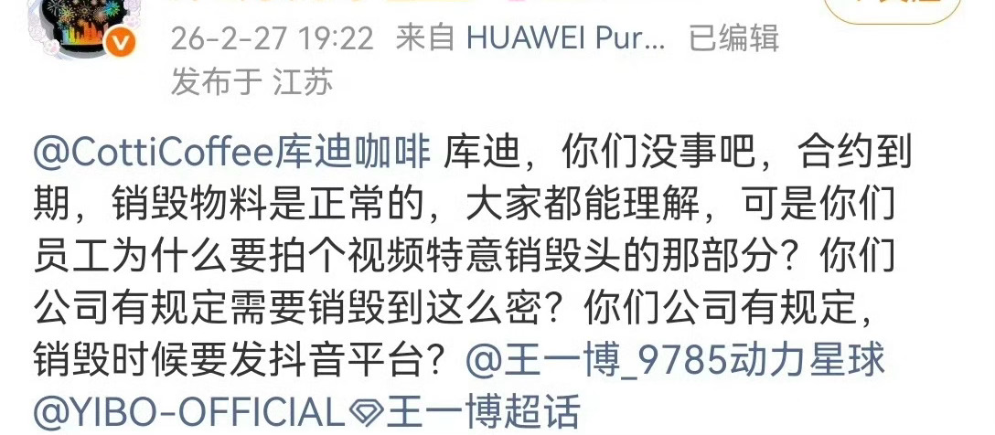 库迪员工把王一博的物料销毁过程发网上,王一博粉丝要库迪道歉!库迪 销毁王一博物料