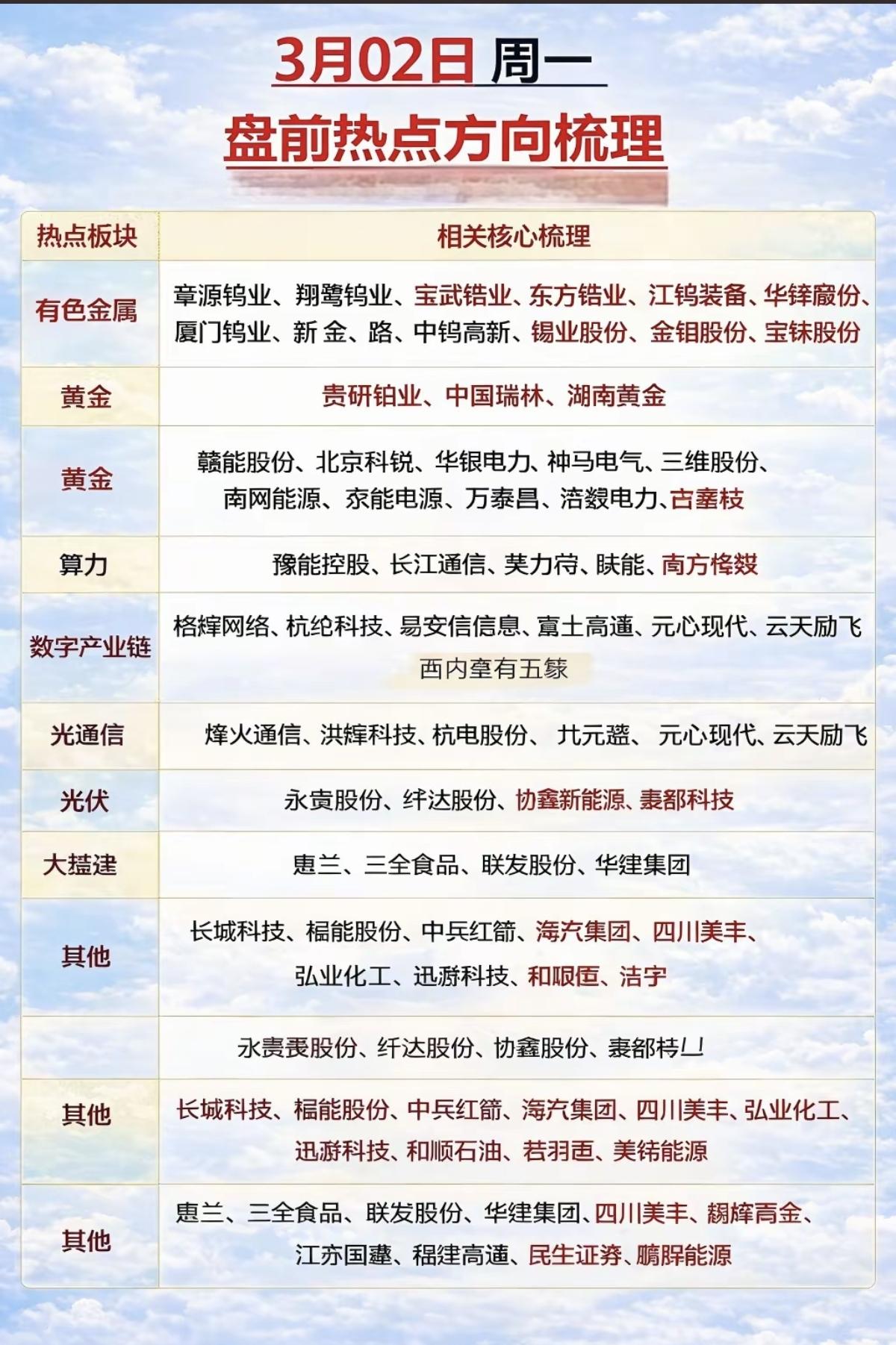 3.2周一盘前 市场热点+投资方向! 1.有色金属+黄金+小金属 2.算力