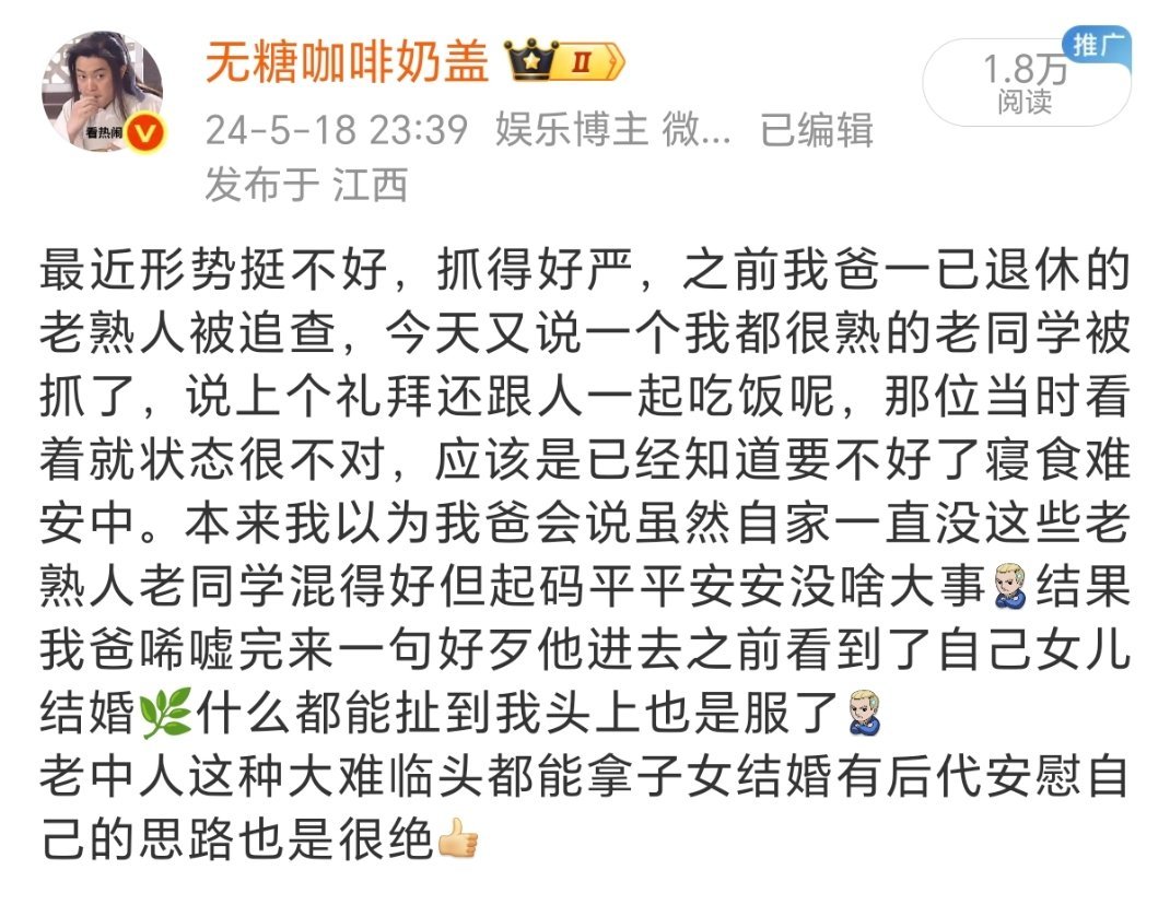 这些年他们催婚的强度,因为我自始至终的软硬不吃从人格侮辱+亲戚齐上阵+道德绑架+威逼利诱转变为基本不自讨没趣只偶尔憋不住说几嘴