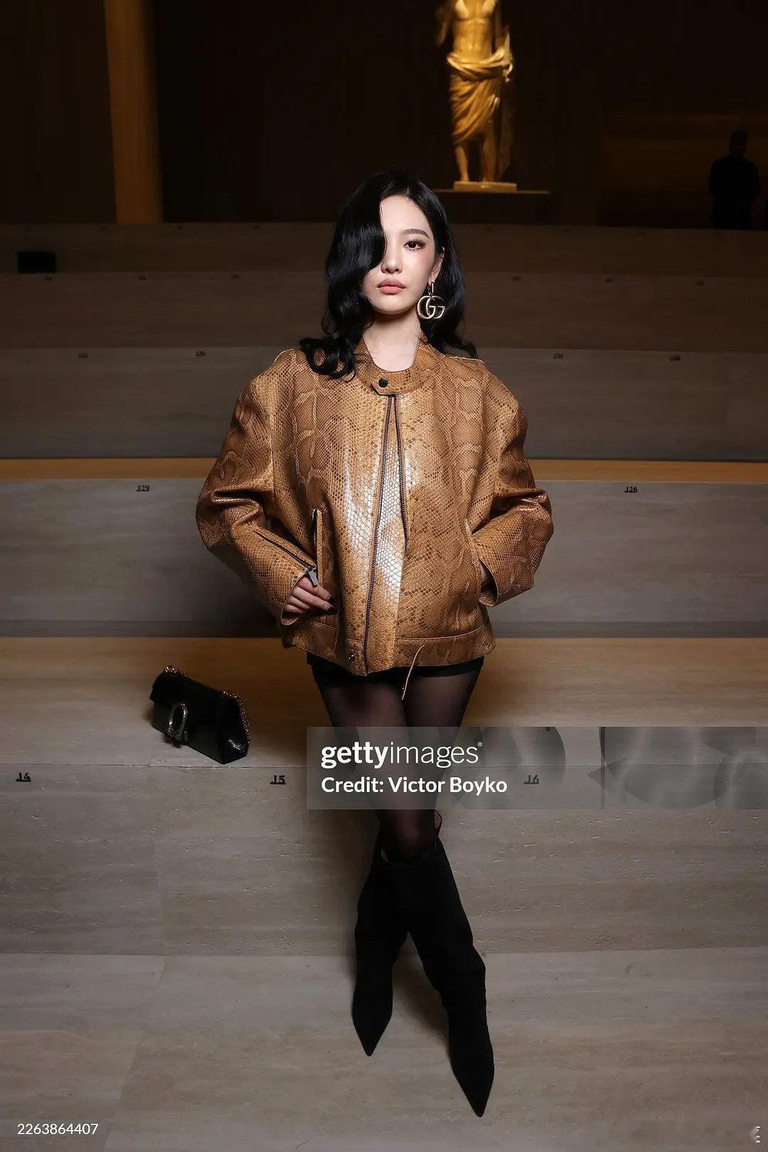 宁艺卓米兰时装周GUCCI大秀g社生图,这一身有点难评
