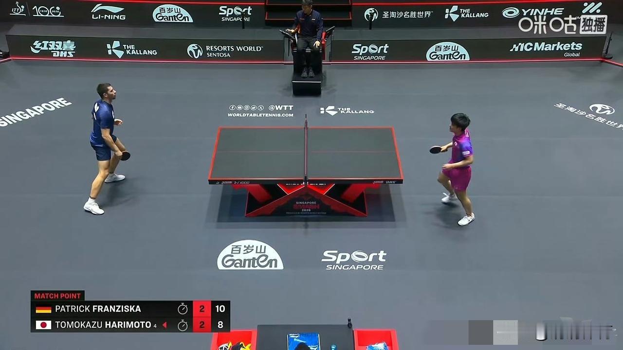 弗朗西斯卡3比2张本智和(-6,7,7,-6,8) 晋级2026WTT新加坡大满