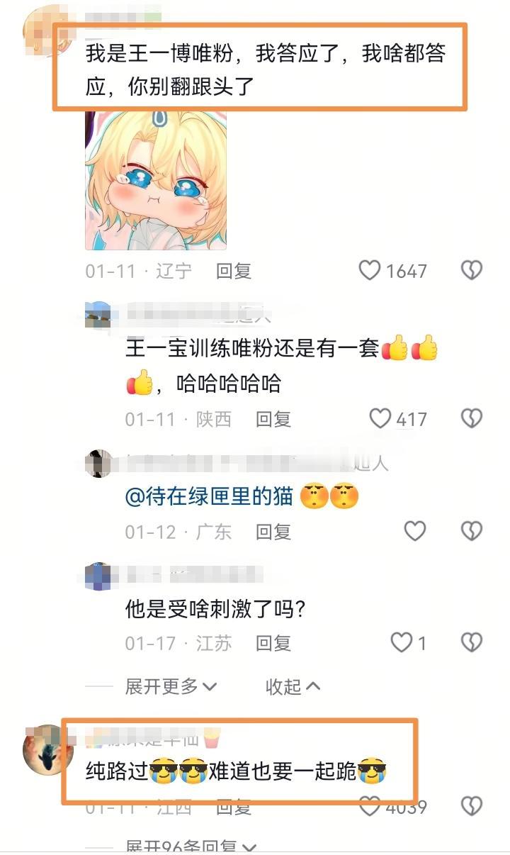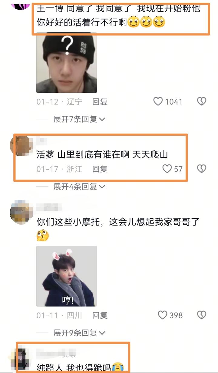 王一博一个人在山上玩的很嗨,还在为自己又战胜了一种恐惧而开心时,粉丝们却是一个个提心吊胆,他的评论区真是一片和谐...... 就这个视频下,不管是小摩托,路人粉还是他人粉,都不可思议的统一了战线:都“跪求”王一博少做这么危险的动作了,实在是太吓人。 现在看到这种高空野外的视频,尤其是这种山上爬着的,空中悬挂着的,第一反应就是王一博在挑战,看着就担心害怕不已。