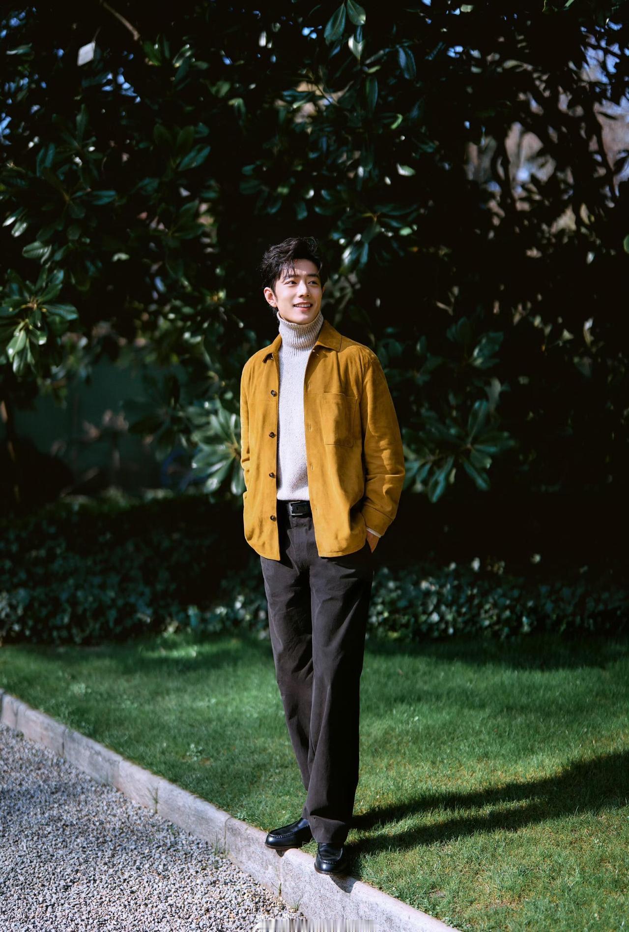 肖战时装周看秀造型|帅气逼人的贵公子 谁还没被肖战这套米兰看秀造型惊艳到! 姜黄色衬衫+高领毛衣+休闲裤的组合,把意式优雅和少年感完美融合!时装周 他站在草坪上的样子,像从画报里走出来的男主角,每一个角度都帅到犯规!米兰时装周