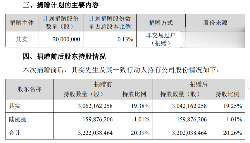 东方财富在公告中表示,本次捐赠事项不会导致公司控股股东发生变化,不会对公司治理结构及持续经营产生重大影响。