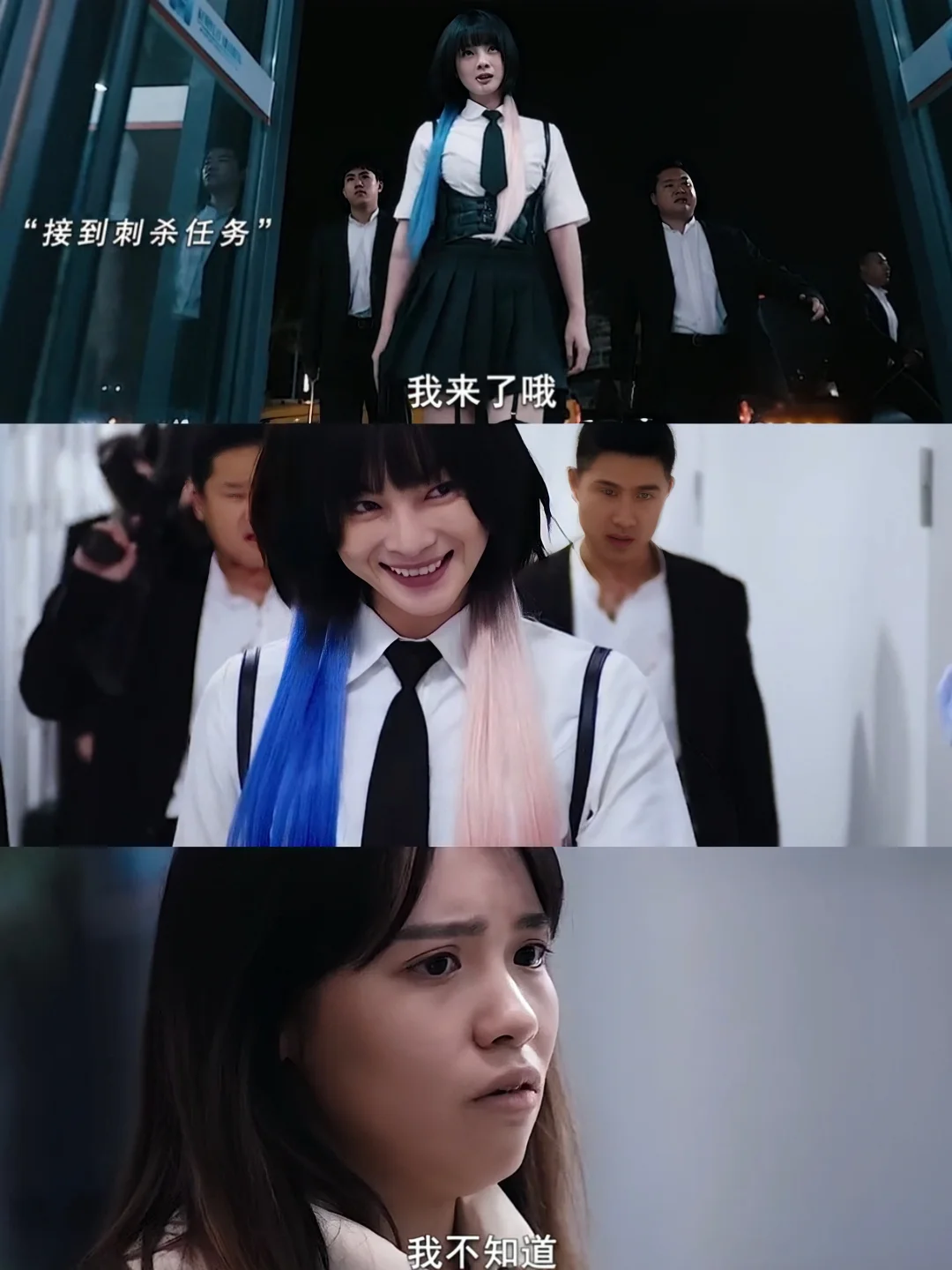 🆘开局嘴吃棒棒糖、蓝粉挑染头发加身,大笑出场屠鲨实验室员工,像极了疯批小丑女,心狠手辣极尽癫狂。她以游戏心态展开这场追逐女主的“猫鼠游戏”,她喜欢掌控强者的感觉,当钟晓男的实力超出了她的控制,她立刻放出了“我要鲨s那个女人”的誓言和命令!