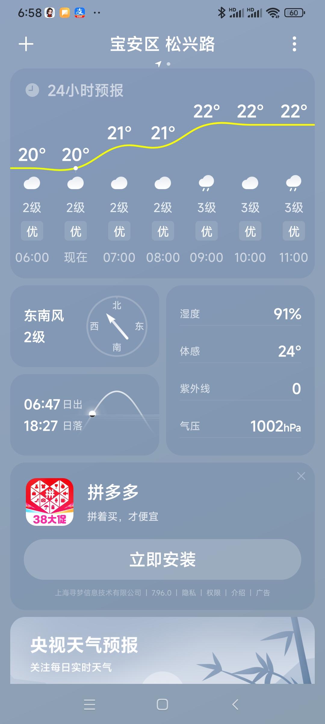 我的今日状态:😁轻松愉快 我这里的天气:🌤️多云分享深圳天气,深圳今日小雨转阴,气温19度转22度,湿度91度。大家早上好,正月十二快乐,好事成双[作揖]