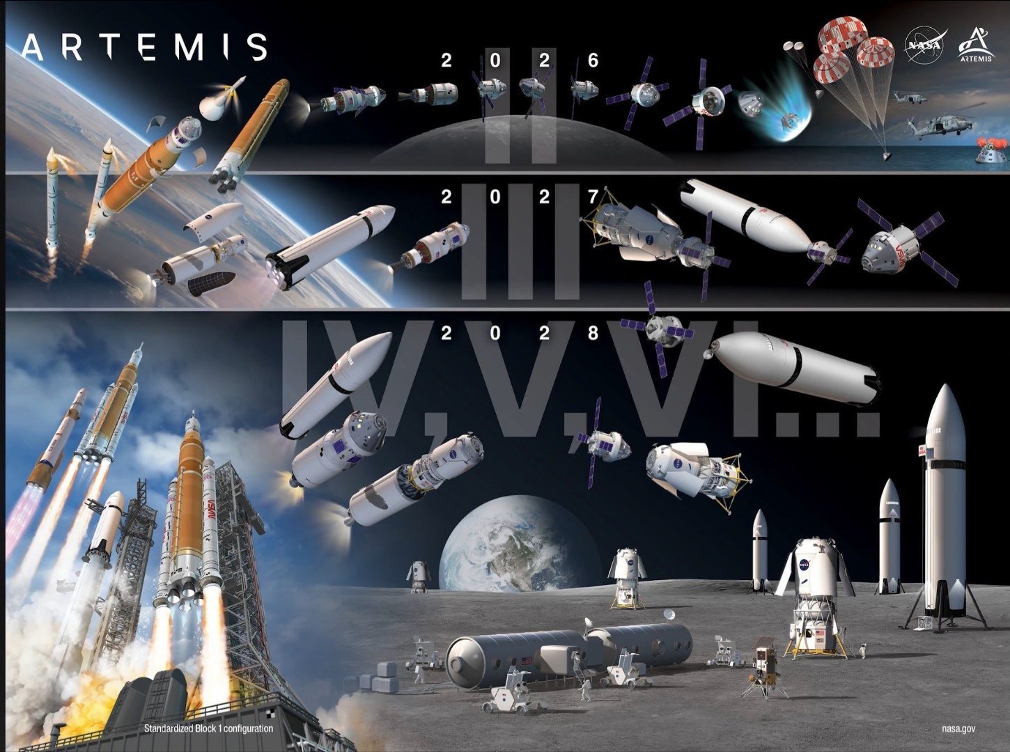 【美国载人登月推迟到2028年】美国宇航局局长贾里德·艾萨克曼最新表示,取消阿耳忒弥斯3号载人登月,将由阿耳忒弥斯4号执行载人登月。阿耳忒弥斯2号改成近地轨道演示任务,计划2027年发射,SLS火箭将猎户座飞船送入地球近地轨道,与月球着陆器星舰或蓝月亮进行对接和在轨加注。完成近地轨道演示任务后,阿耳忒弥斯4号计划2028年年初发射,执行载人登月,阿耳忒弥斯5号2028年年底发射,2028年计划进行两次载人登月。