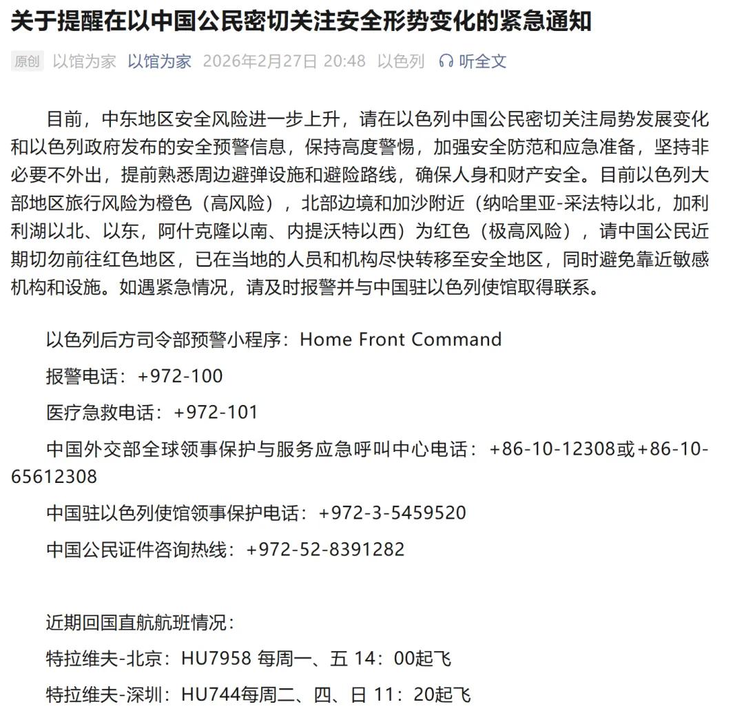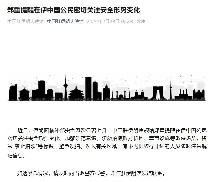 2月28日凌晨,中国驻伊朗大使馆官微发布郑重提醒: