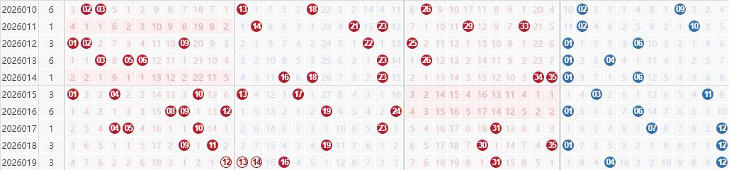 大乐透密集出号趋势依然延续:12 13 14 16位置相连和近期大热的08-13区域非常接近,但几乎又整体向右侧便宜,密集热区其实依然在延续,收尾的31是隔期重号,附近还有上期的30 35虽然不如前面密集但也是连续三期出号;后区12则是三期重号,整体看热号带动稳定区域出号,不知道本期热区还能否延续呢?