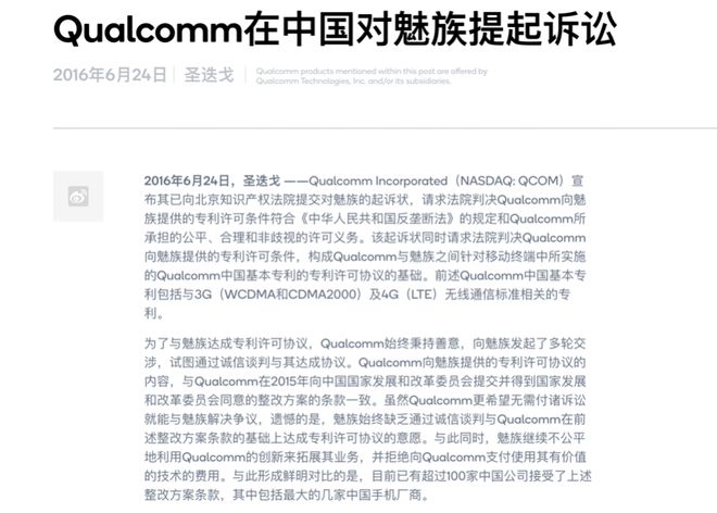 但高歌猛进的魅族在这时收到了高通的一纸诉状。