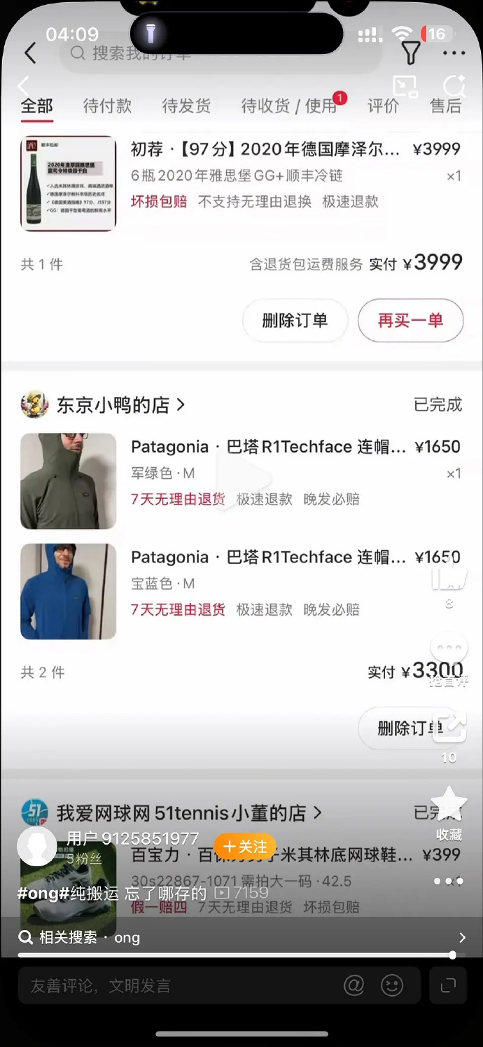 订单里购买的衣服,王一博还穿过同款,就是不知道时间线是否对得上…