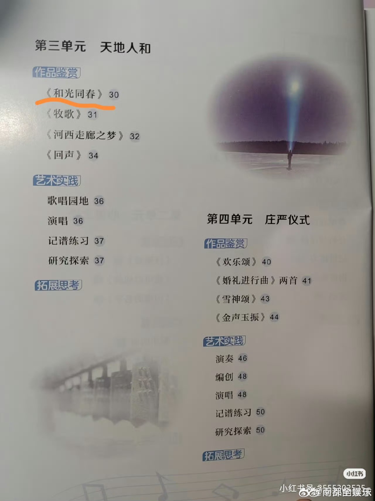 周深和光同春入选音乐教材恭喜又一首歌进入九年义务教育音乐教材!截至目前,周深一共有5首作品被纳入九年义务教育音乐教材,包括《大鱼》《灯火里的中国》《有我》《繁星璀璨的天空》及《和光同春》,分布在六年级到八年级。太厉害了!周深五首歌被纳入九年义务教育教材周深四首歌被纳入九年义务教育教材