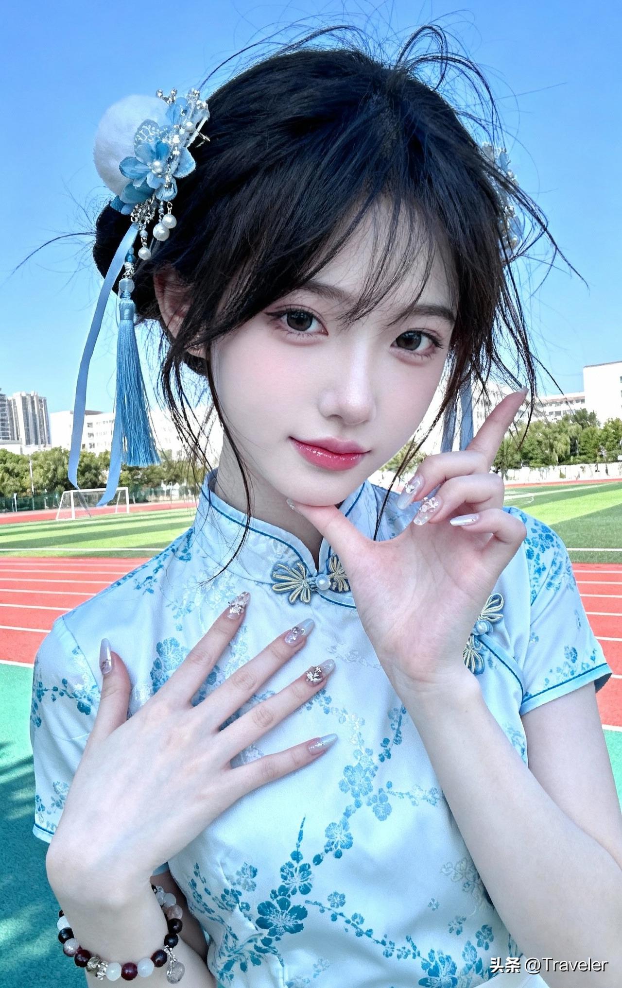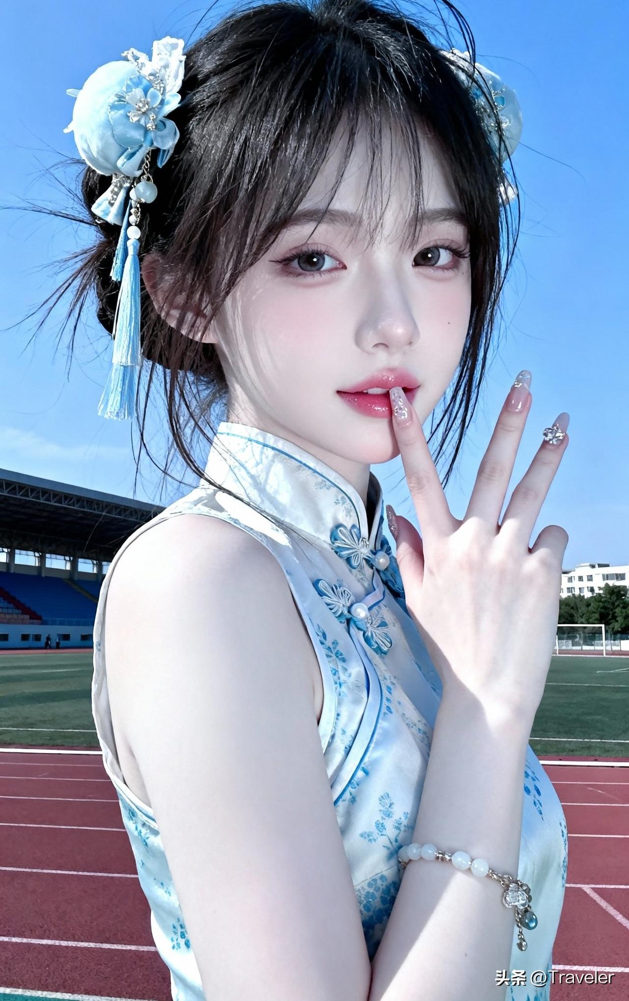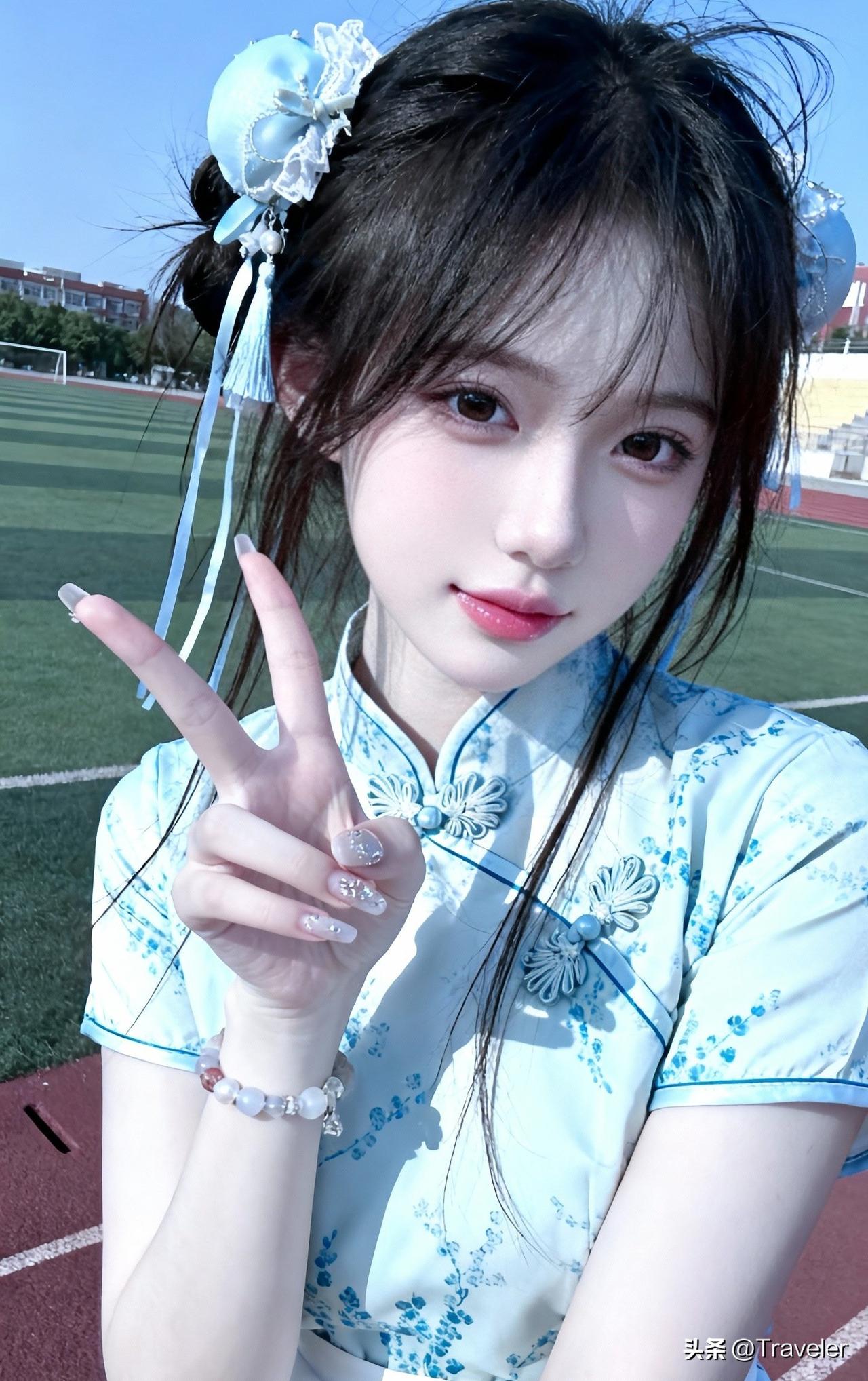 蓝衣少女,校园时光,青春洋溢