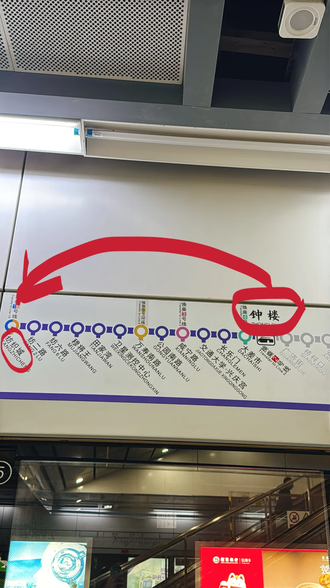 2,我住在钟楼地铁站附近,所以从这里出发,6号线往纺织城方向,坐到底12站!看图3图4。