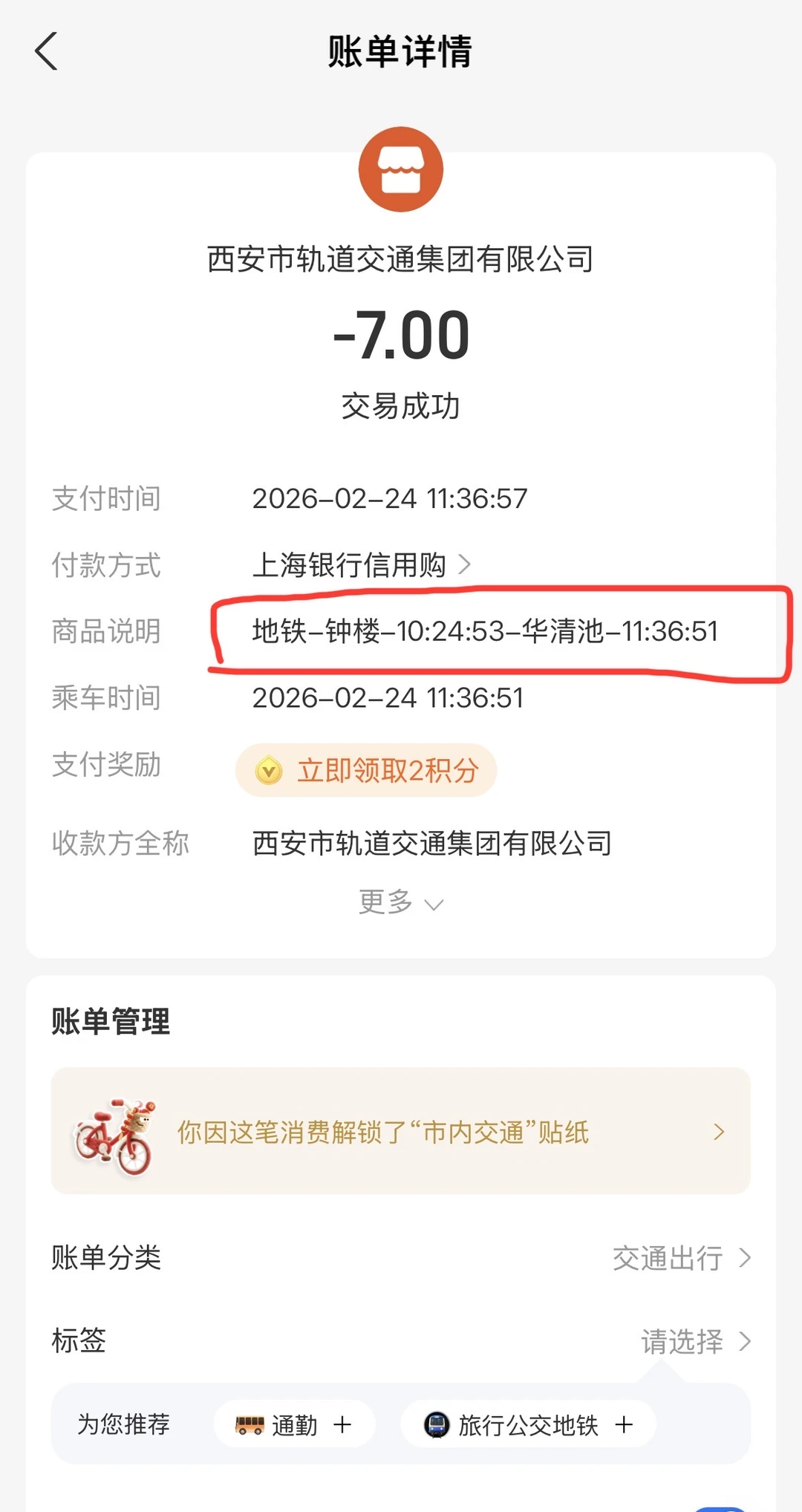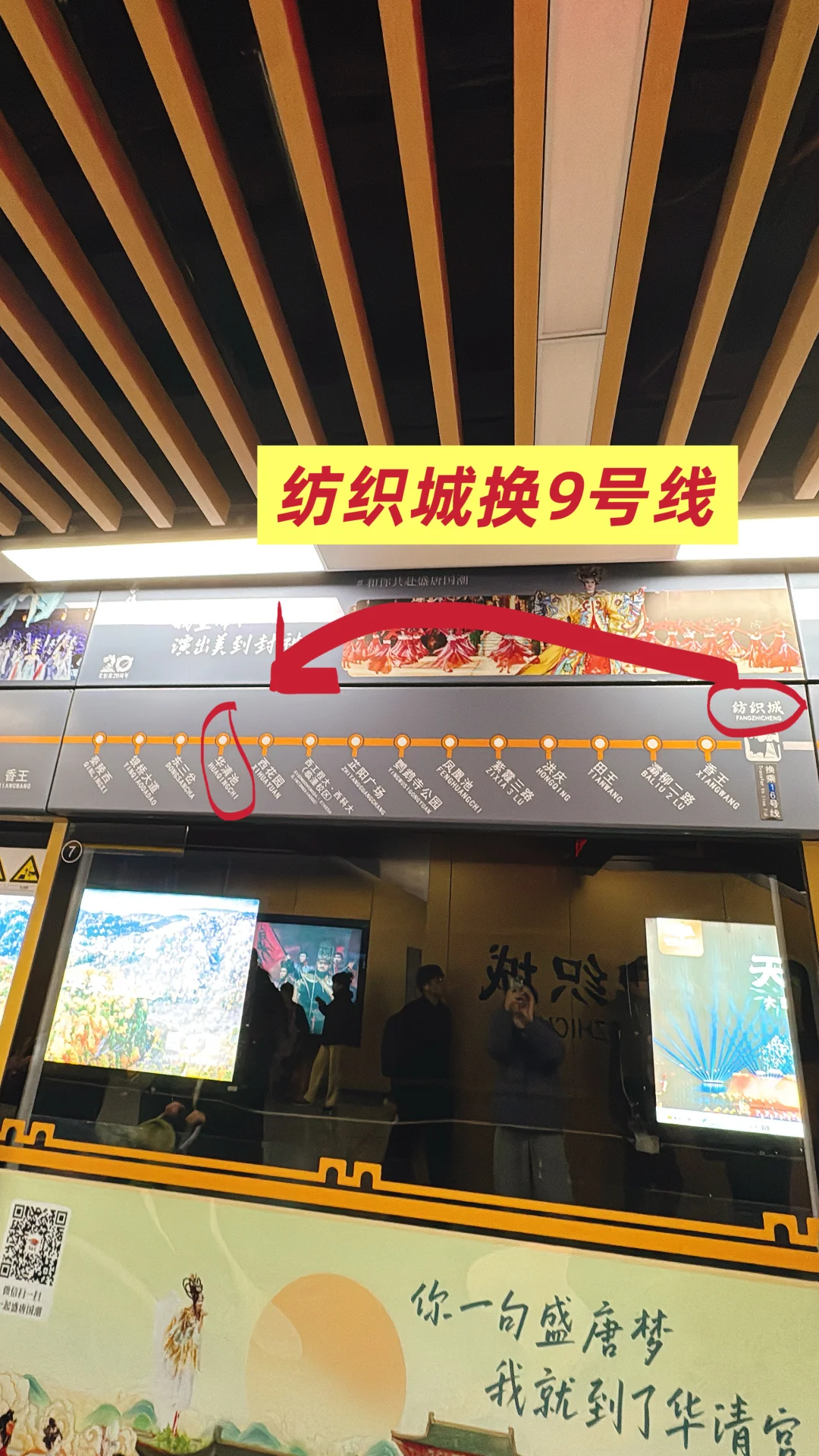 3,在纺织城换乘9号线,往秦岭西方向,坐到华清池站,看图5图6。到这里花费7元,用时1小时12分钟!看图8。