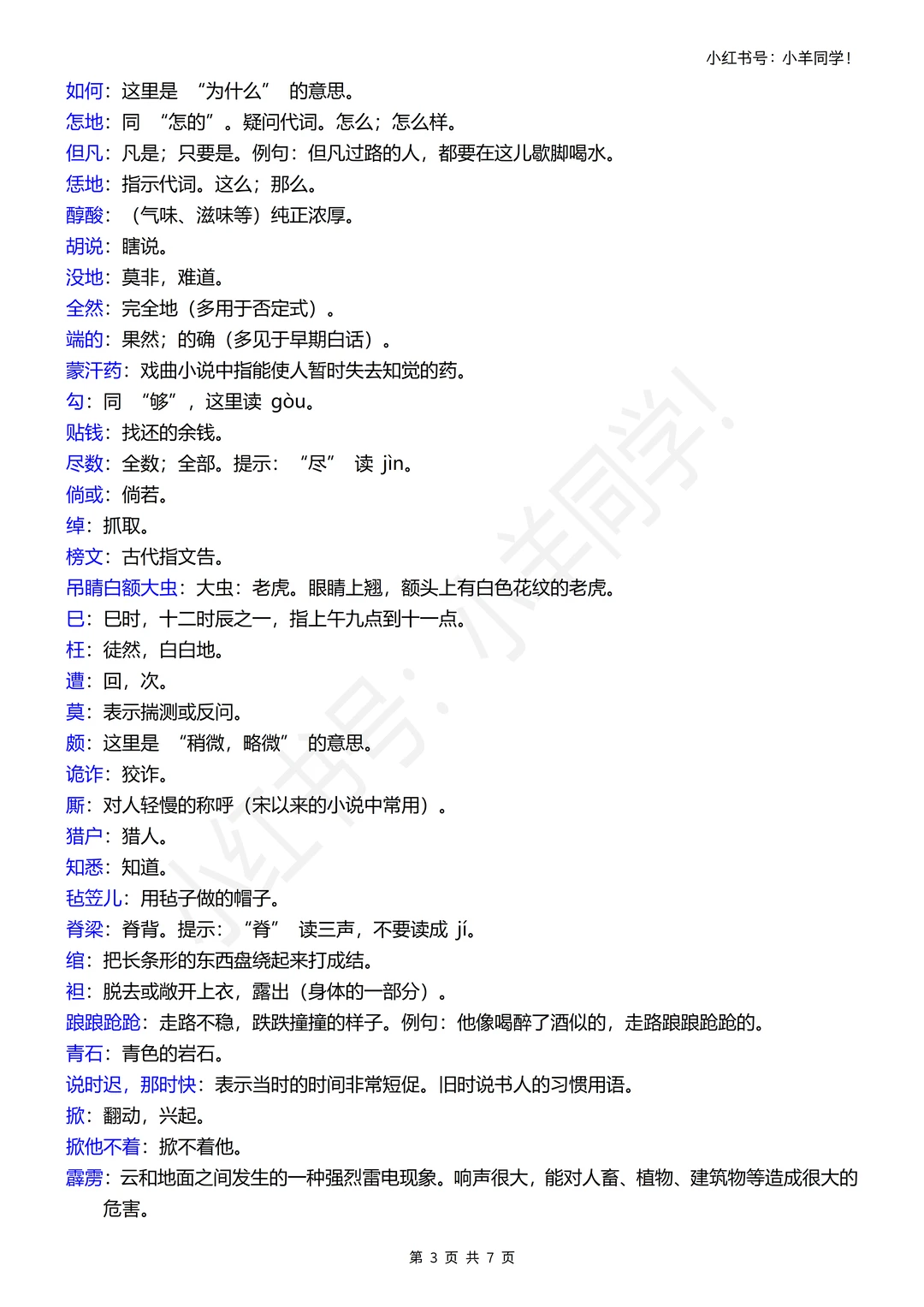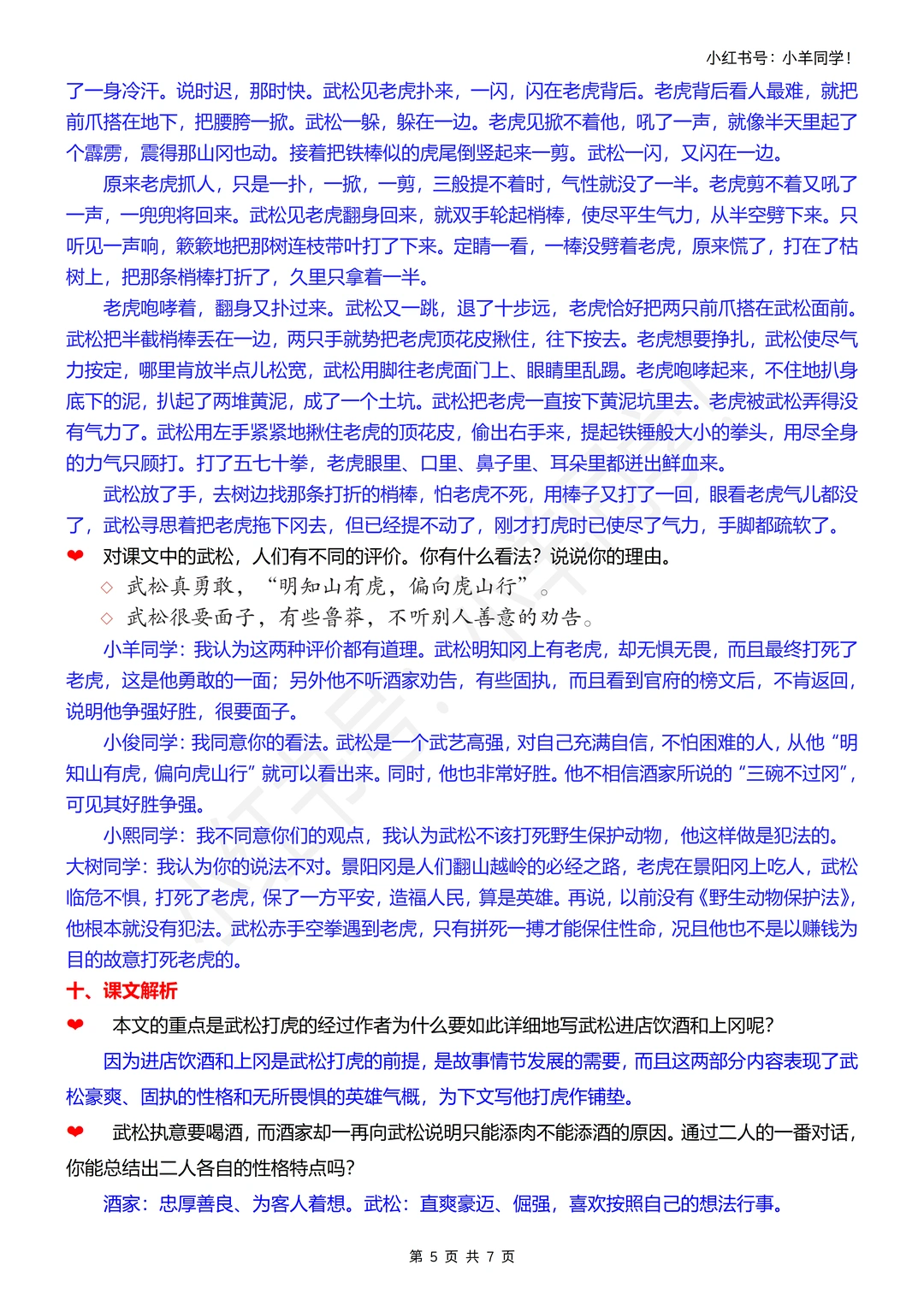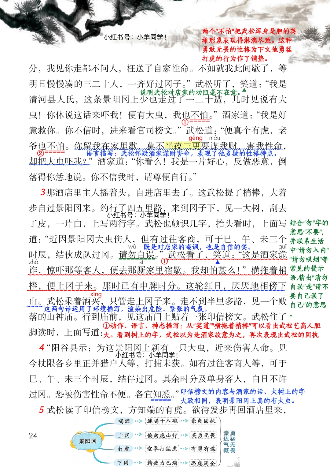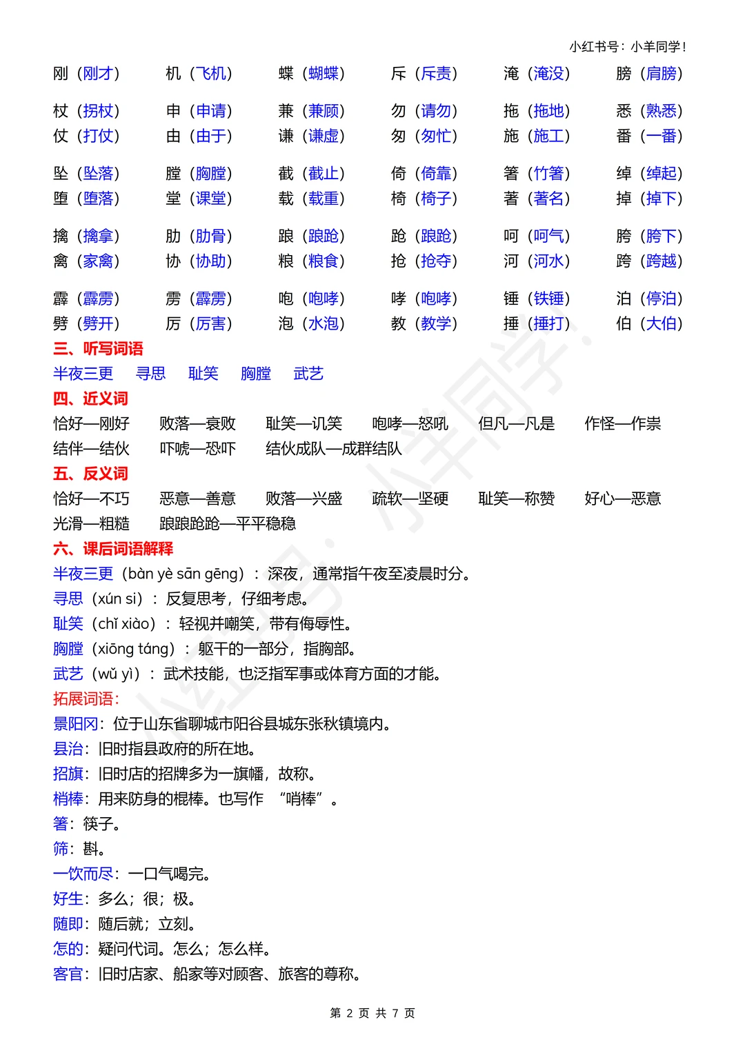 📖 核心学习目标(必掌握) 1️⃣ 生字词:认识20个生字,读准3个多音字,会写15个字+重点词语,默写过关✅ 2️⃣ 阅读:默读时,联系上下文猜不懂的词语意思 3️⃣ 重点💪:按顺序提炼小标题、说主要内容;详细讲述武松打虎(加语气动作) 4️⃣ 拓展:谈谈对武松的看法,尝试阅读《水浒传》原著 💡 提醒:武松打虎细节,阅读理解常考!