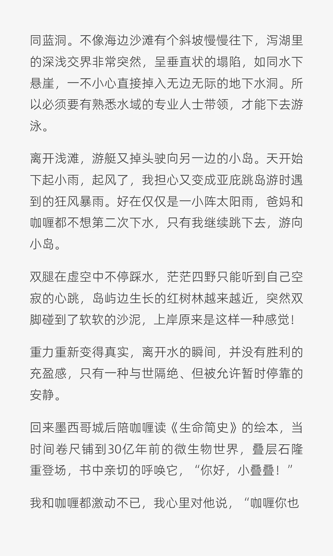 回来墨西哥城后陪咖喱读《生命简史》的绘本,当时间卷尺铺到30亿年前的微生物世界,叠层石隆重登场,书中亲切的呼唤它,“你好,小叠叠!”