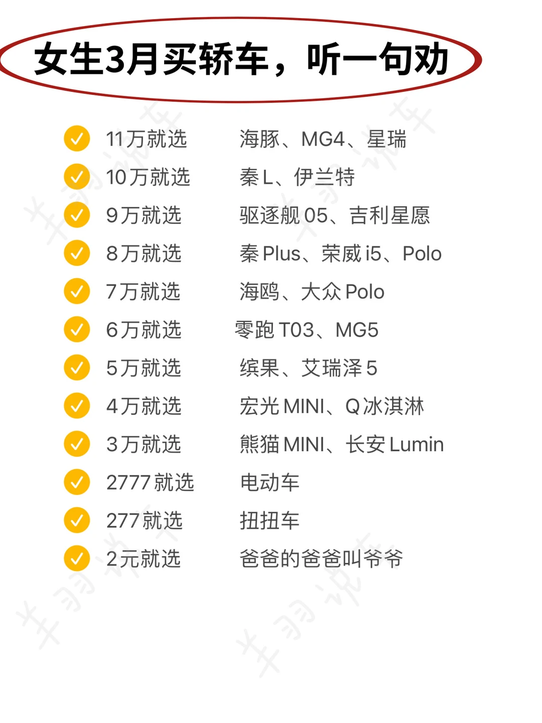 🚗女生怎么能少的了一辆轿车呢 它不仅是一个代步工具 更是一种能给你带来很多情绪上的价值 没车时,回到家才算下班 有车时,坐到车上就已经下班了 无论加班多晚,它都会一直等着你 多了一份不拘束的自由 想去哪里说走就走 不再为下雨担忧 每天可以美美的出门 不再裹的像个粽子 也不存在还没到公司就花了的妆 出门什么样 到公司就什么样 也会变得更加自信、从容、独当一面 因为你本来就值得拥有更美好的生活 ❤️希望新的一年姐妹们都能提到心仪的车车