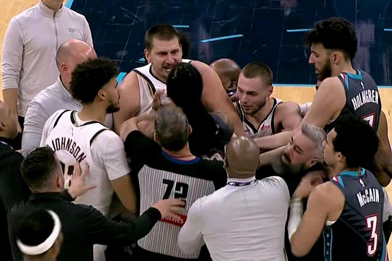 约基奇这表情太“吓人”了!在掘金末节挑战雷霆的比赛中发生极其疯狂一幕:多尔特恶意肘击扳倒犯规约基奇装无辜,约基奇滚倒在地,立马起来干仗了,谁知道杰林威廉姆斯为杜尔特出头,双方推搡混乱一团,反而多尔特在后面啥事没有,裁判看回放,直接判罚多尔特恶意犯规驱逐出场,杰林一次技术犯规,约基奇一次技术犯规,不排除约基奇有夸张演戏的戏码,但是恶汉多尔特这动作太不应该了,不知道会不会赛后追加处罚? NBA肘击事件