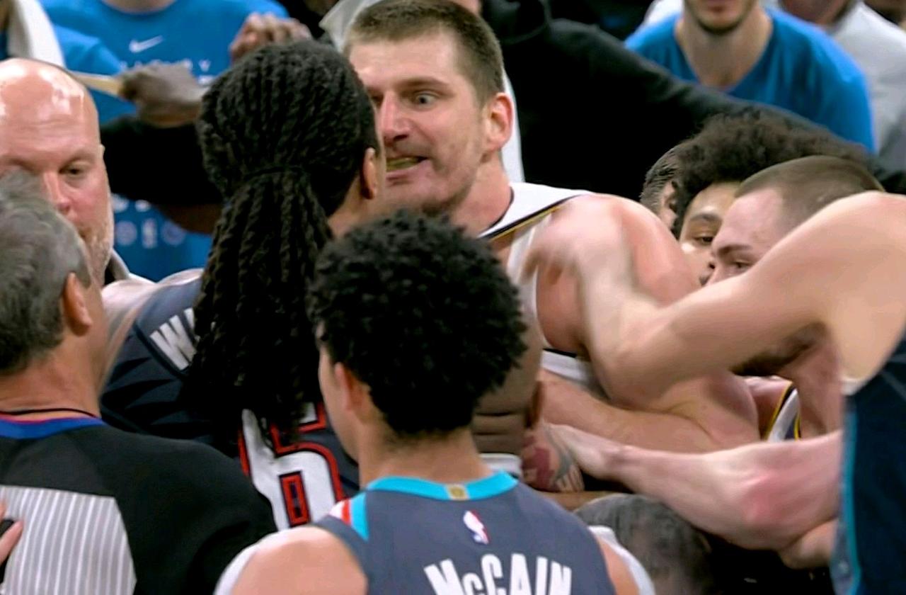 约基奇这表情太“吓人”了!在掘金末节挑战雷霆的比赛中发生极其疯狂一幕:多尔特恶意