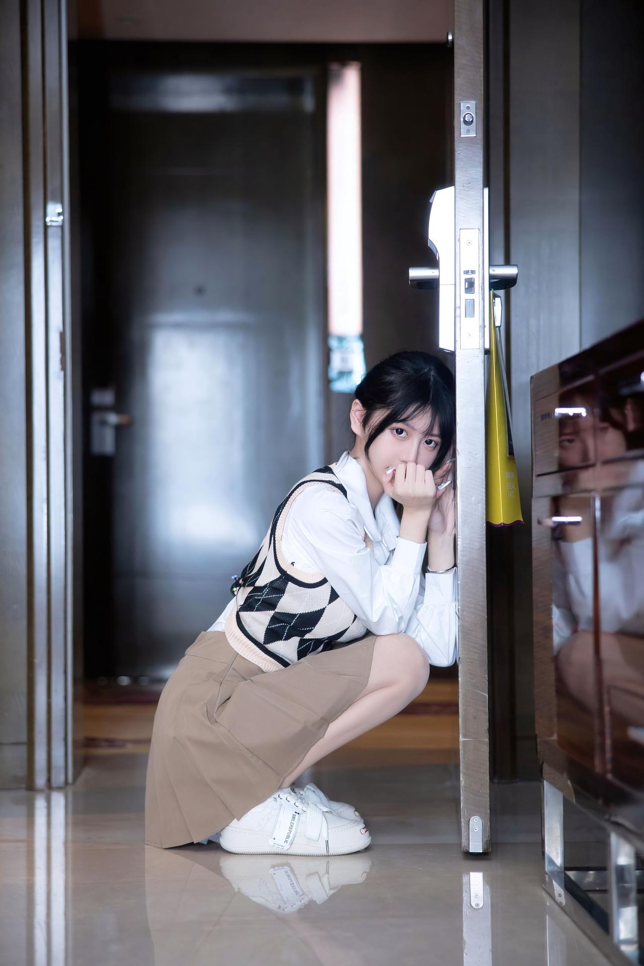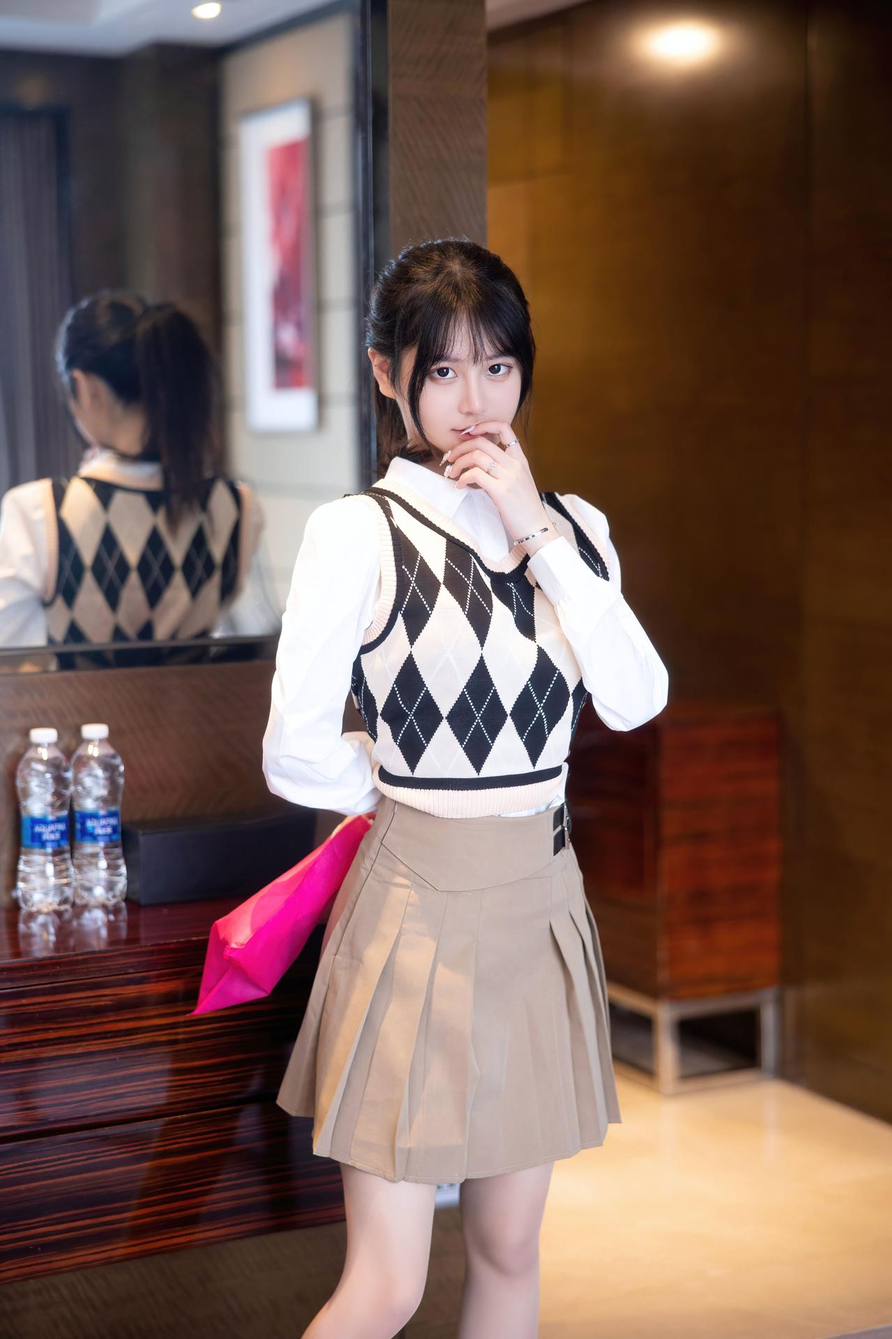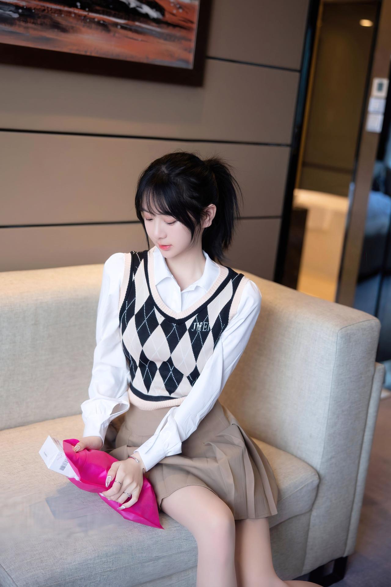 美女究竟能有多美格子衫百褶裙,你是我的白月光