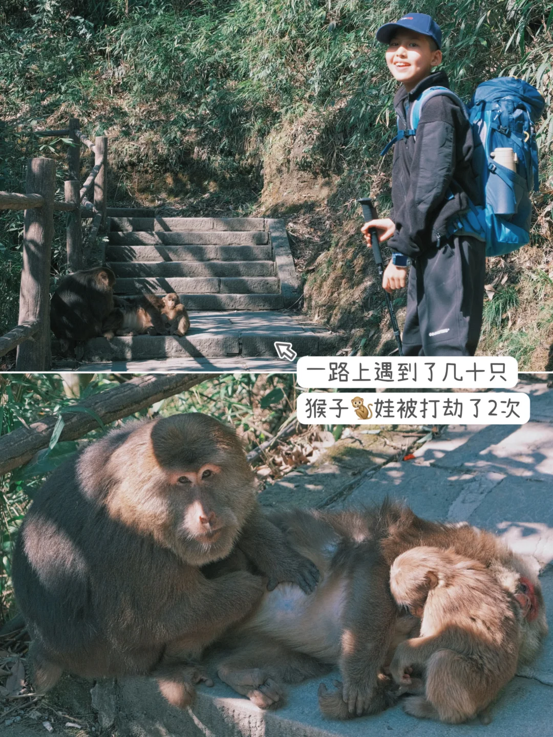4️⃣带登山杖!既可辅助爬山,也可防身!(一路上遇到了几十只🐒,我们被打劫了2次[惊恐R])