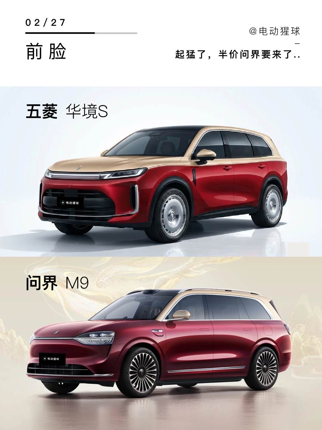 五菱和华为合作的华境S来了,熟悉的红金双拼色,连尺寸都和大哥M9基本一样,半价问界会迟到,但不会缺席[doge]手握60个W,你会怎么选?
