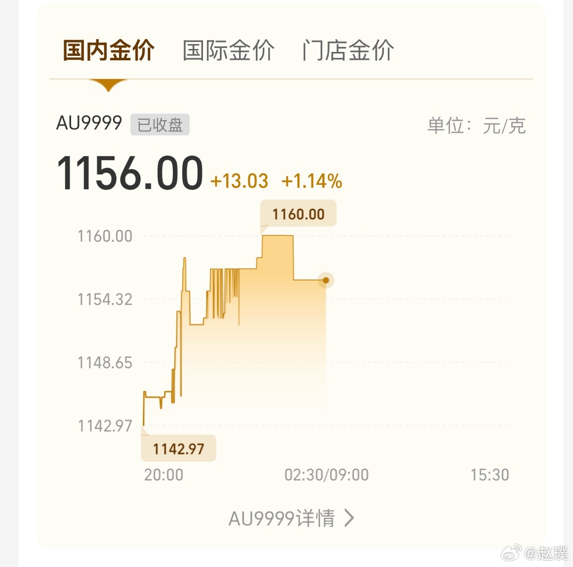 看最近的消息,感觉金价又要上涨了……收盘时国内黄金为1156元,国际黄金5277