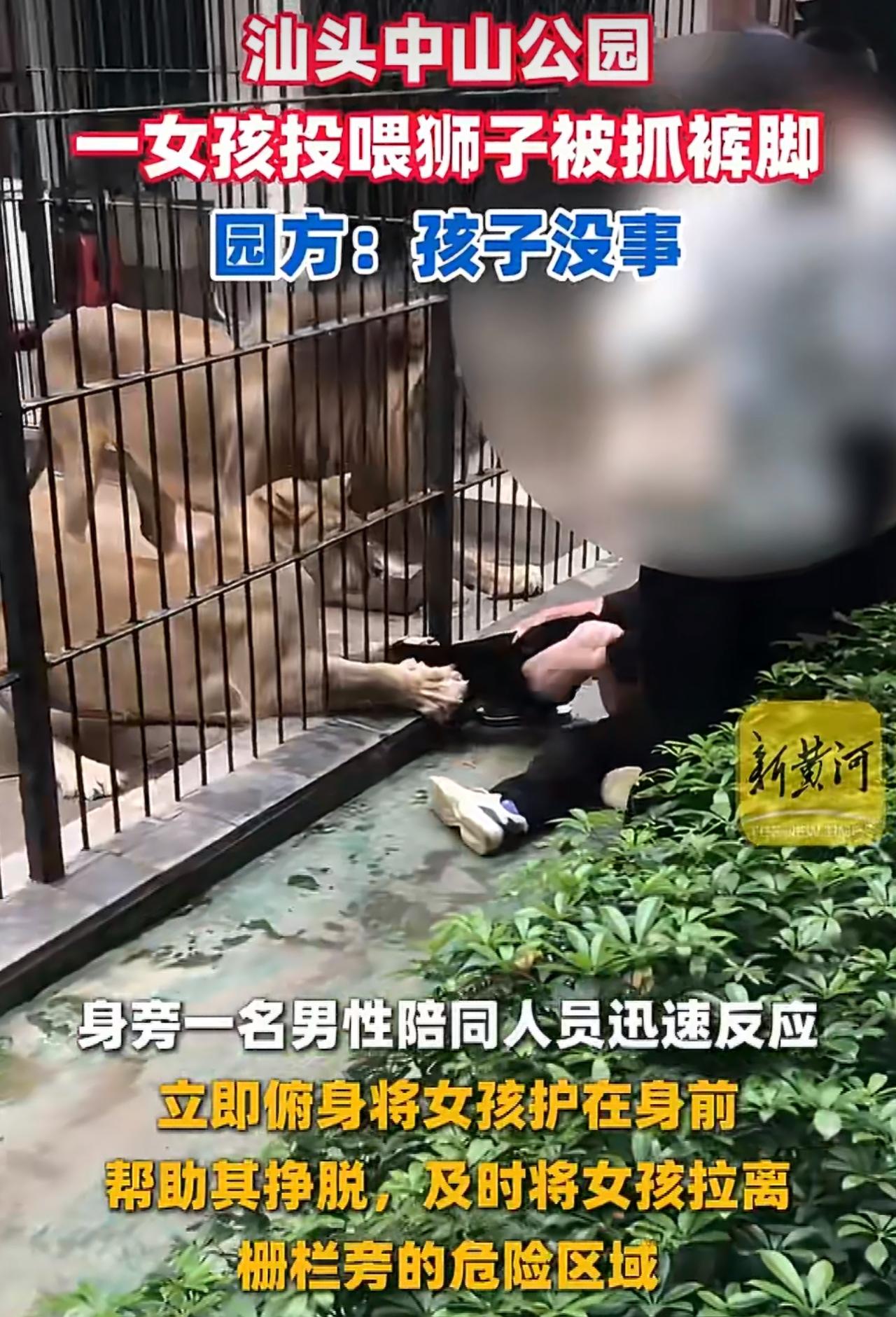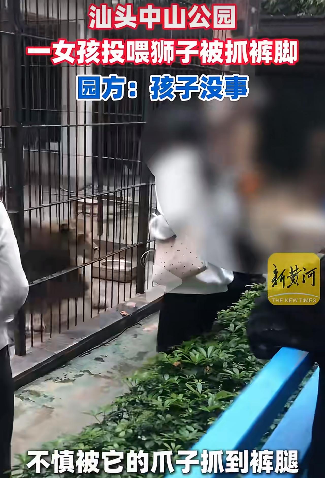 广东汕头中山公园这一幕,看完让人手心直冒汗。 2月26号,一个穿紫色上衣的小女孩,在动物园里喂狮子。本来开开心心的,谁知道笼子里的母狮突然伸出爪子,一把抓住孩子的裤脚,直接把人拽倒在地。 孩子当场吓懵了,话都说不出来,旁边的饲养员反应超快,冲上去拼命拉孩子、用棍子打狮爪,整整缠斗了28秒,才把孩子救回来。 万幸只是裤腿撕烂、腿上擦破点皮,没出大事,孩子也打了疫苗,家属也没再追究。 可这事真的越想越后怕。根本不是意外,是园方一直在违规。饲养员随便让孩子靠近铁笼,栏杆缝隙大到狮子爪子能轻松伸出来,还搞这种近距离投喂赚钱,安全完全是摆设。 事后园方就辞了个饲养员、停业整改,网友根本不买账。这明明是管理漏洞,不是一个人的错。 狮子终究是猛兽,野性刻在骨子里,再温顺也不能拿命去赌。园方别只想着赚钱,家长也别大意,安全这根弦,松一秒都可能出事。别等真的悲剧发生,才知道后悔。