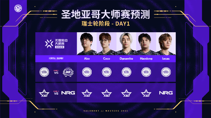 虎扑02月28日讯TEC预测瑞士轮第一日:均看好EDG取胜,lucas认为NRG胜出
